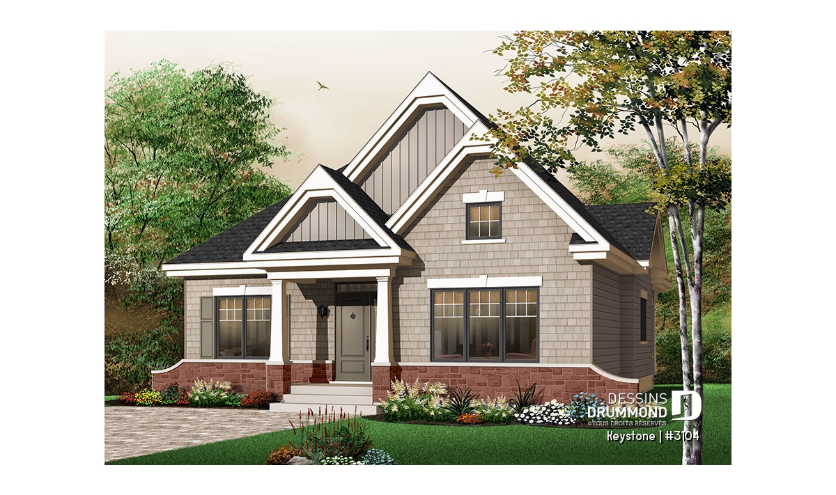 D’un cachet extérieur remarquable, cette maison, avec ses allures « Craftsman », se veut une valeur sûre quant au passage du temps. L’usage d’un matériau imitant le bardeau de cèdre, bien marié à d’heureux pignons et à un muret de brique-pierre, en façade principale, procure à cette maison sa propre identité.