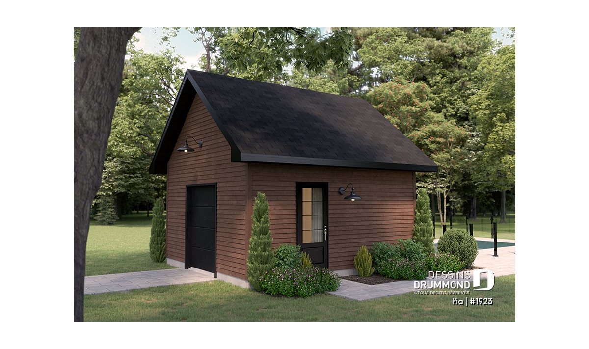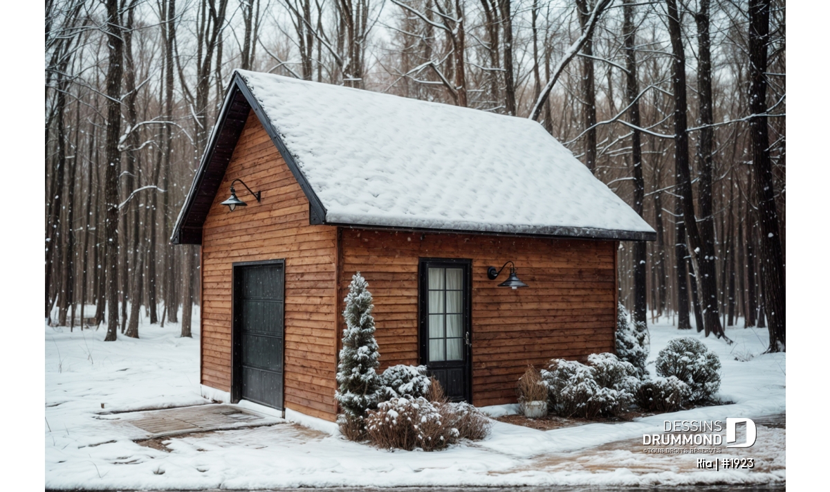 Plan de remise proposant une mini porte de garage afin de faciliter le rangement