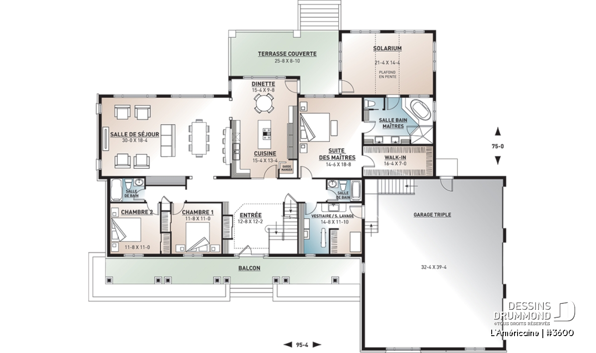 Plafond cathédrale, Mezzanine, Garage latéral, Salle de lavage au rez-de-chaussée, Bureau / Salle étude, Garde-manger, Ilôt, Plafond à plus de 8', Suite d'invités, Terrasse abritée, Solarium, Dinette / Coin déjeuner, Accès au sous-sol du garage, Librairie, Bain et douche séparés, Suite des maîtres au rdc, Chambres séparées