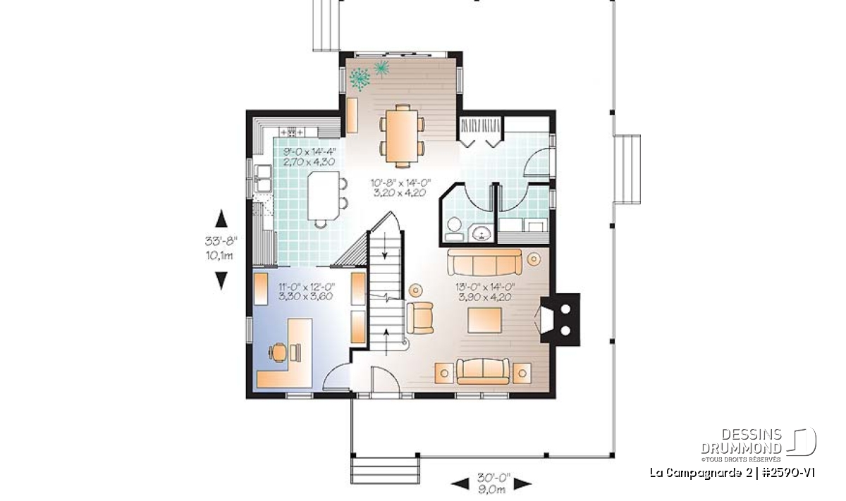 | Largeur | 30'0" | Profondeur | 33'8" |