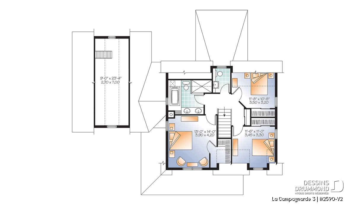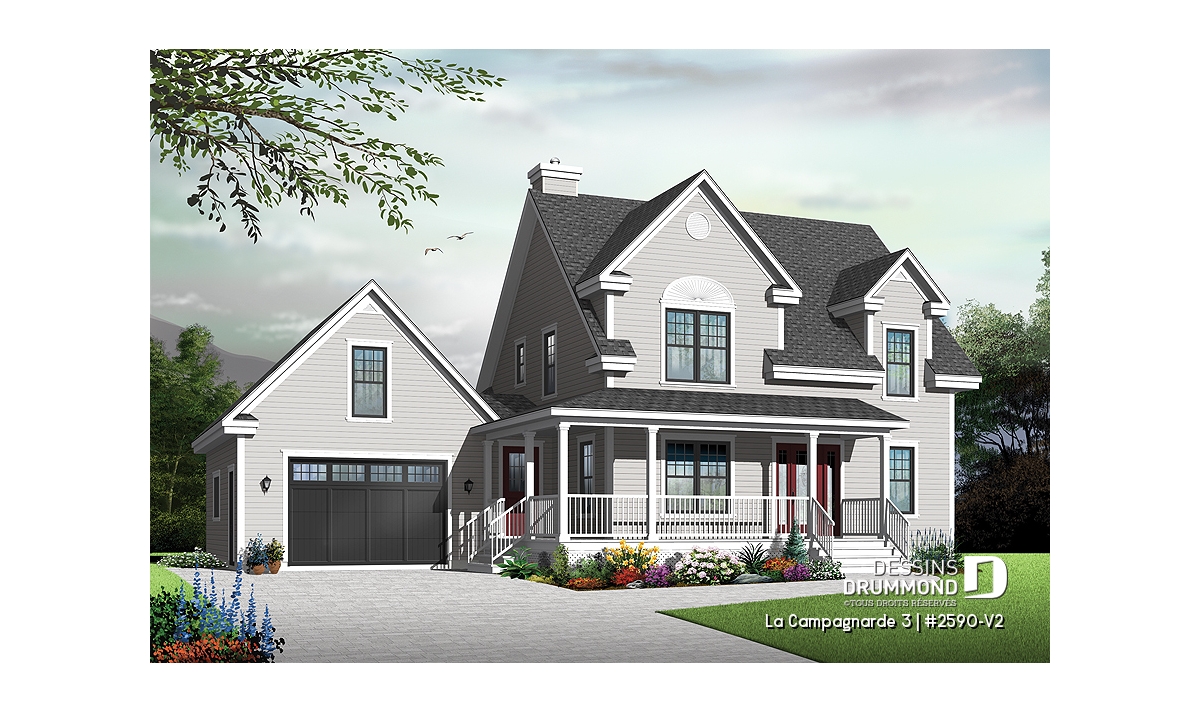 Fort en demande dès son arrivée sur le marché, le plan 2590, dont origine ce modèle version, a toujours conservé l’intérêt des acheteurs à la recherche d’une maison du genre. Est-ce en raison de son coup d’œil particulier avec cette lucarne imposante en façade principale jumelée à une galerie couverte courant sur deux façades ou en raison de son aménagement intérieur comportant plein d’atouts prisés par les propriétaires avisés ou ceux en devenir ?