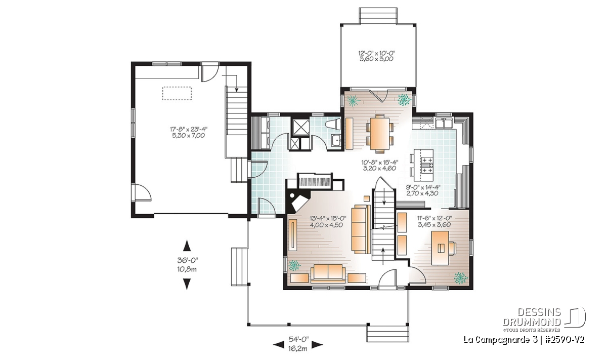 Pour ma part, je crois sincèrement que c’est l’ensemble du modèle qui a tant plu. D’ailleurs, à quelques reprises, des clients nous ont demandé de lui ajouter le fameux garage manquant. Et comme il nous fait toujours plaisir de répondre aux attentes de nos clients, voici donc ce modèle version avec garage ajouté de 19pi de largeur par tout près de 25pi de profondeur offrant une descente vers le sous-sol et un rangement boni à l’étage accessible via un escalier escamotable.