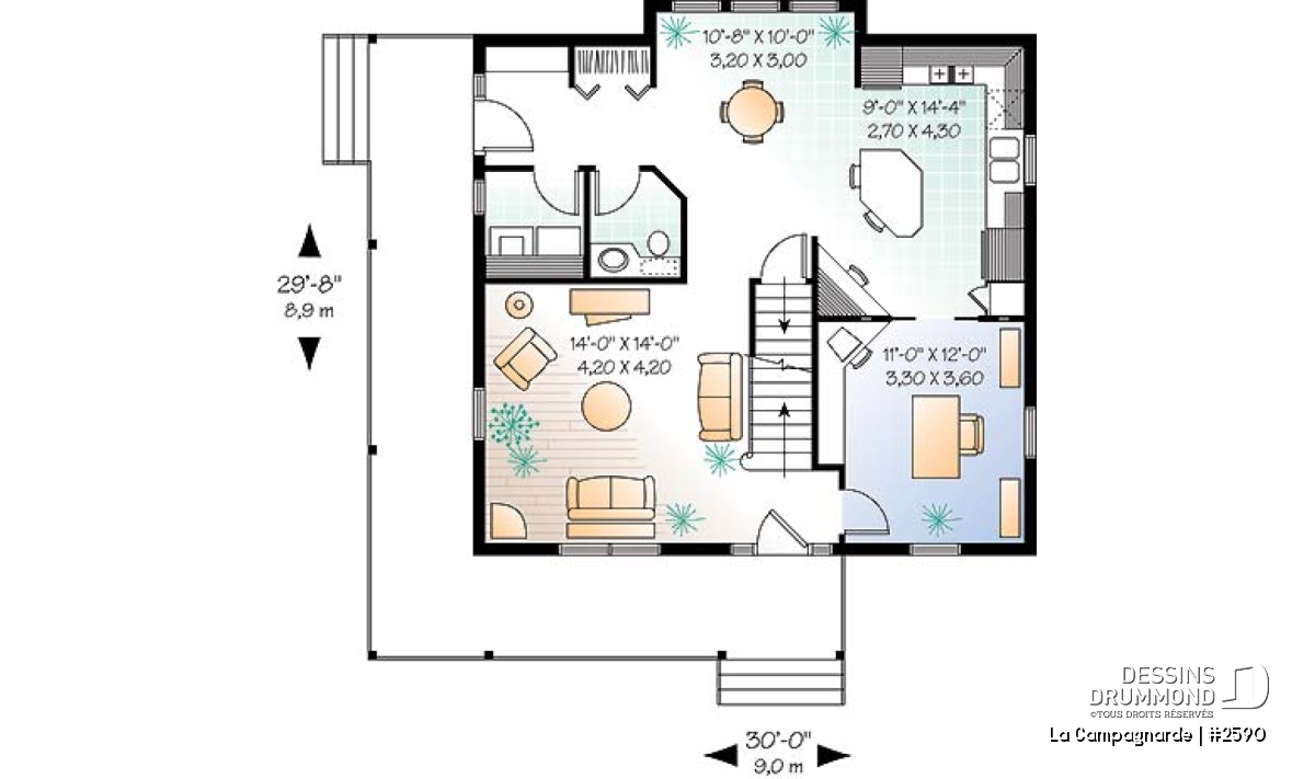 À l’intérieur, un escalier bien positionné permet l’aménagement de beaux espaces tout autour. Qu’il s’agisse du secteur activités du rez-de-chaussée ou du secteur repos de l’étage chacun offre lumière et confort.