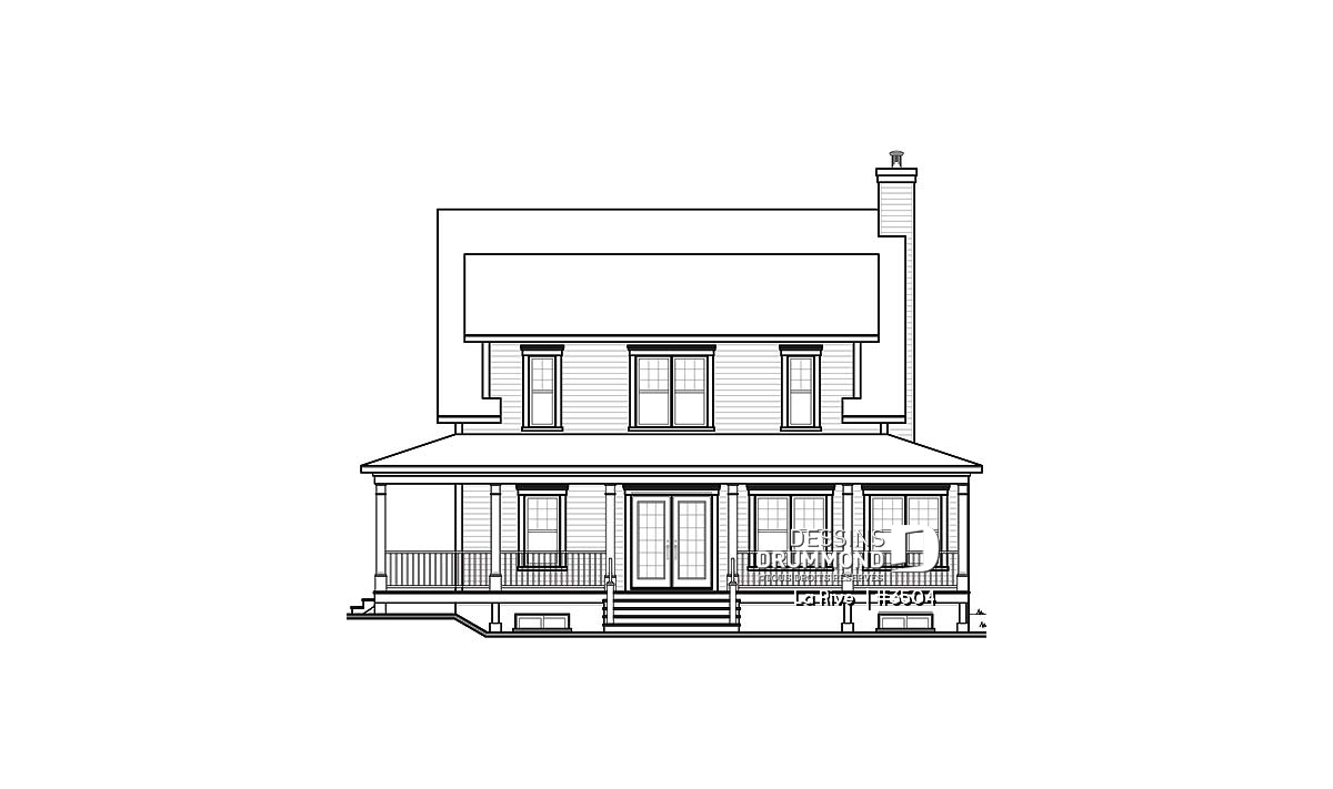 Plan de maison champêtre, bord de lac, 3 chambres, coin bureau, foyer double face
