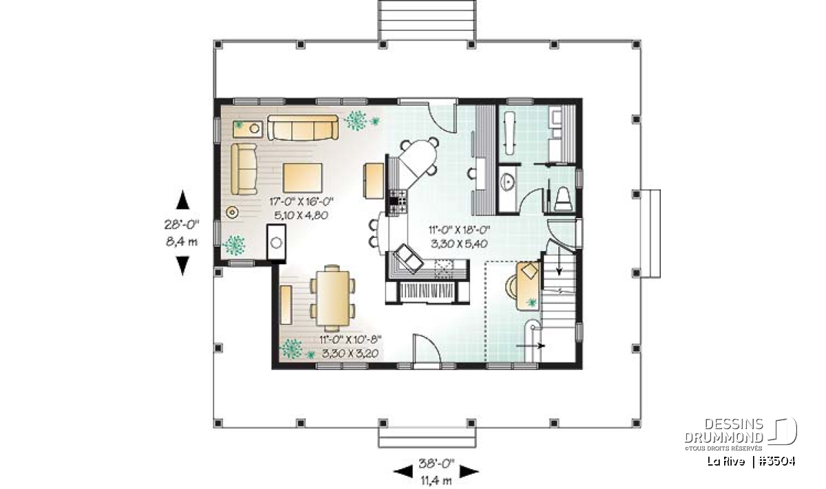 | Largeur | 38'0" | Profondeur | 28'0" |