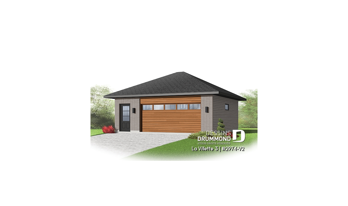 Plan de garage contemporain pour deux voitures avec rangement