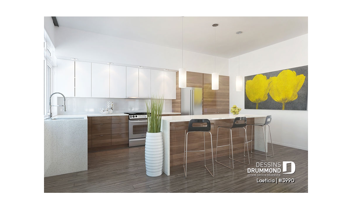 Accès au sous-sol de l'extérieur, Accès au sous-sol du garage, Foyer, Ilôt, Plafond à plus de 8', Suite des maîtres à l'étage, Walk-in ch. maîtres