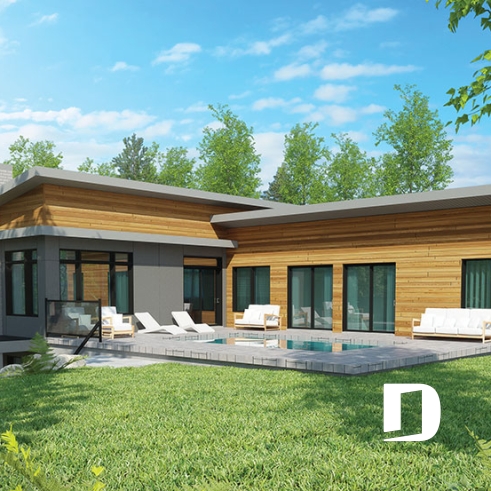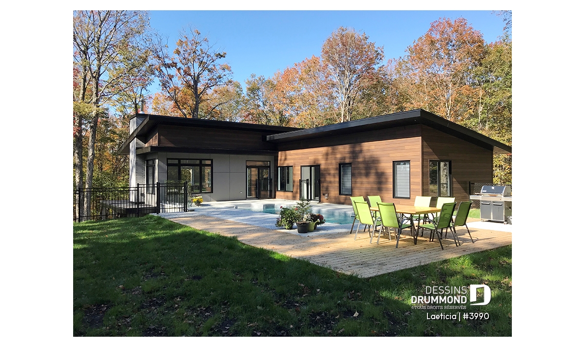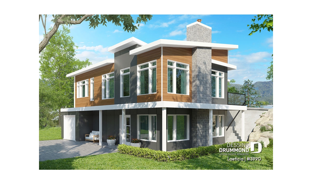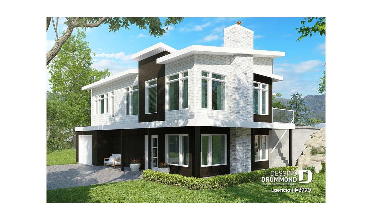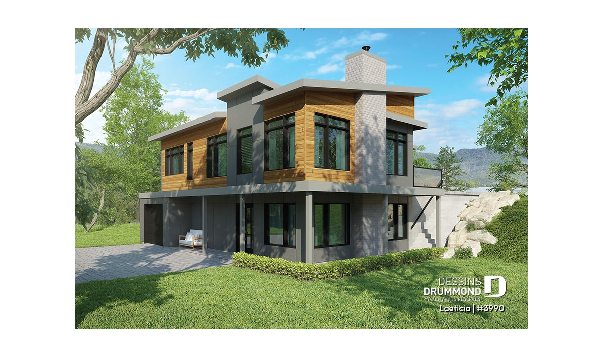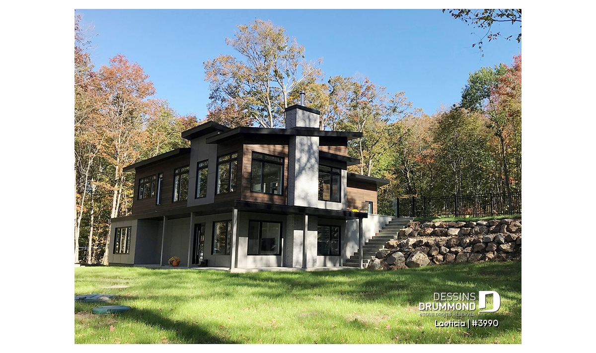 Maison genre chalet contemporain, avec l'espace habitable à l'étage (maison principale).