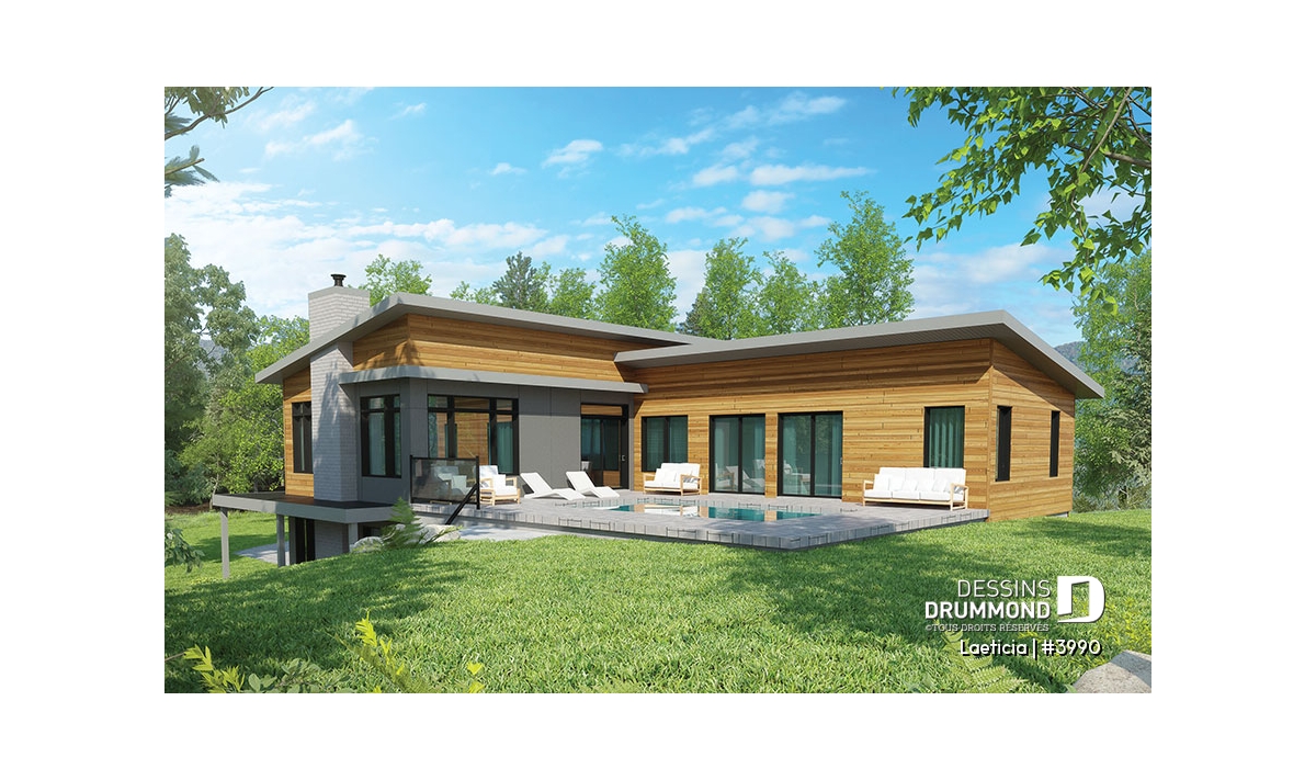 Espace à l'étage aménagé afin de maximiser la vue sur la piscine.