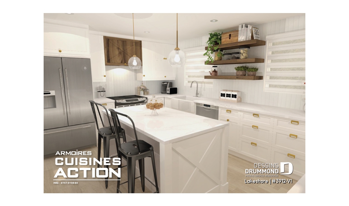 Au sous-sol, tout de même exposé entièrement à l’arrière, on est agréablement surpris par la présence de 4 chambres avec lit double, de deux salles de douche, d’un atelier/rangement et d’une grande salle familiale avec foyer et luminosité pour un modèle version fort approprié.