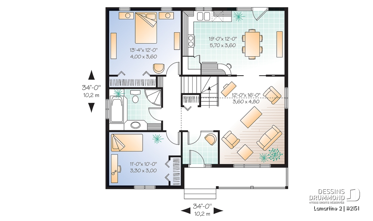 | Largeur | 34'0" | Profondeur | 34'0" |