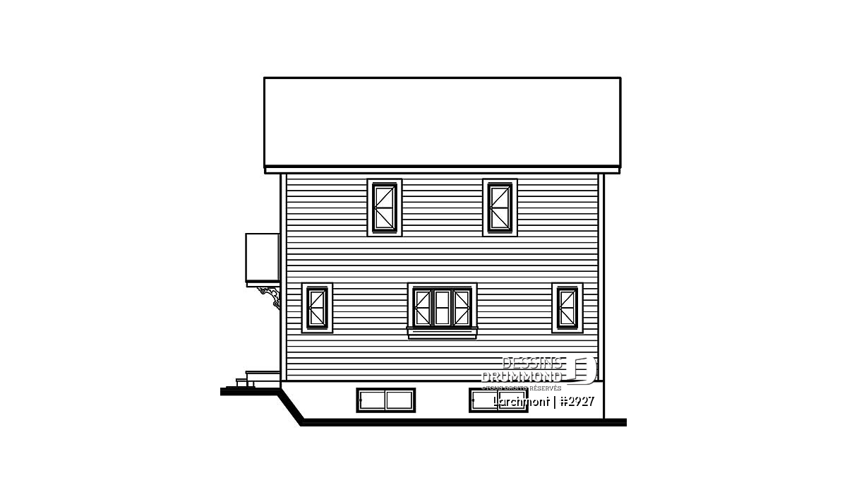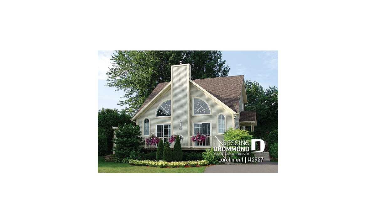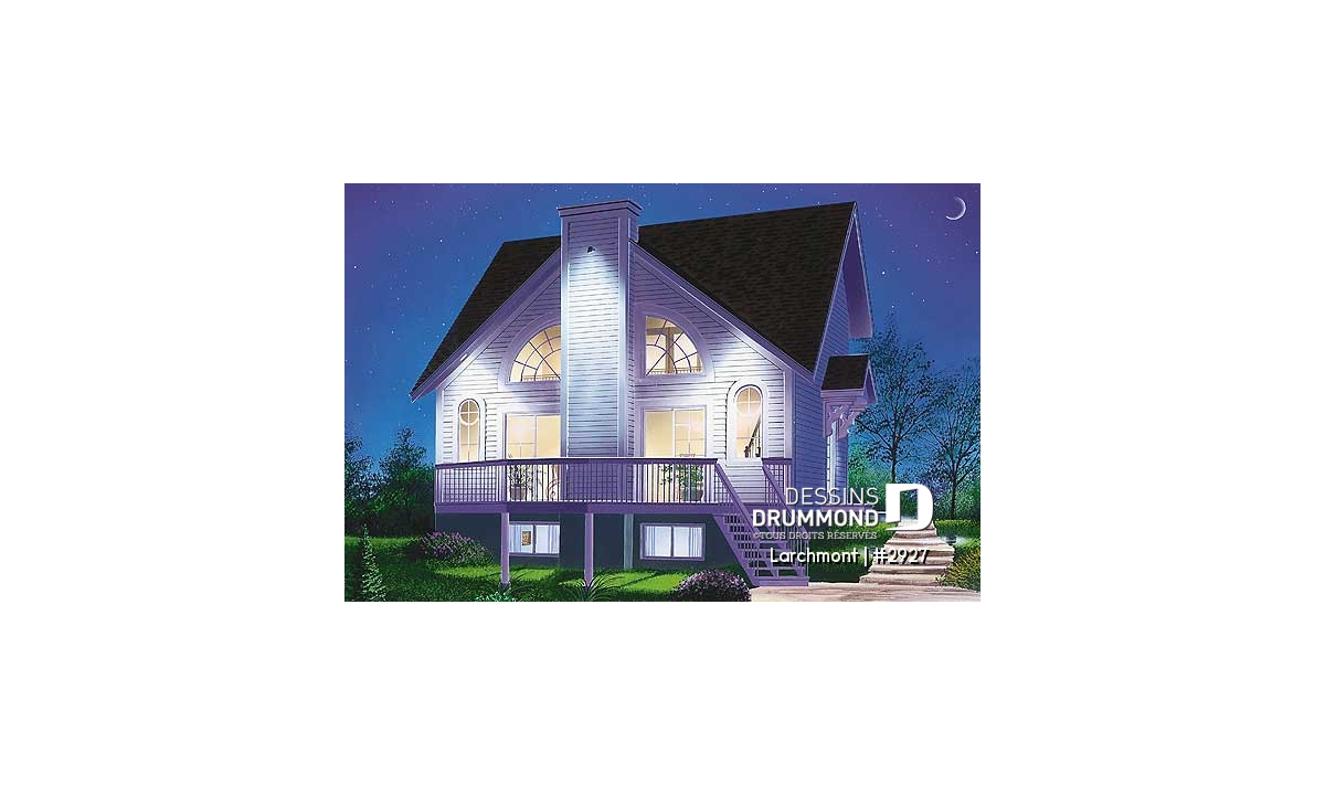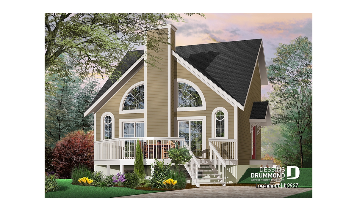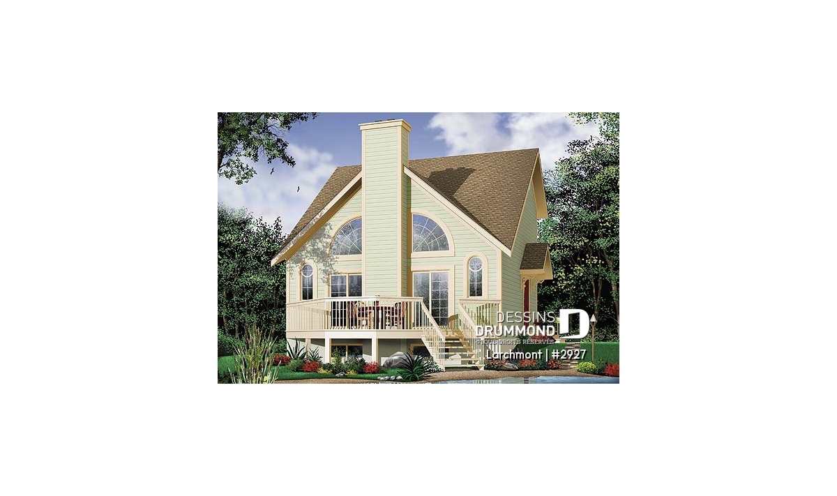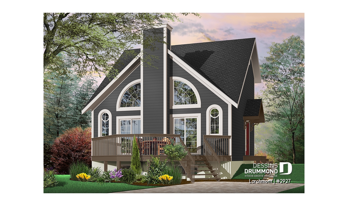 Dans la lignée des chalets que propose Dessins Drummond, celui-ci est l’un des plus populaires avec un budget de revient raisonnable, un extérieur balancé avec fenestration originale bien distribuée de chaque côté d’un foyer central sans oublier un intérieur entièrement ouvert. Entrons donc voir ça de plus près.