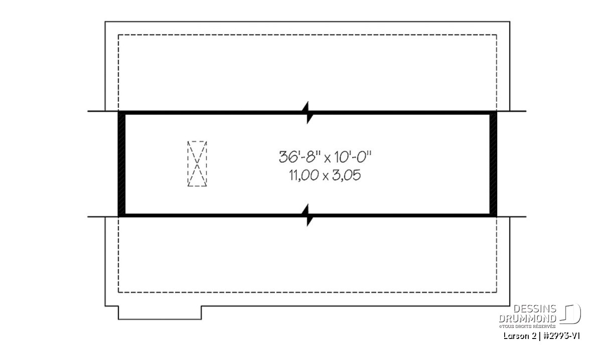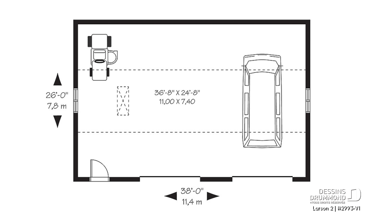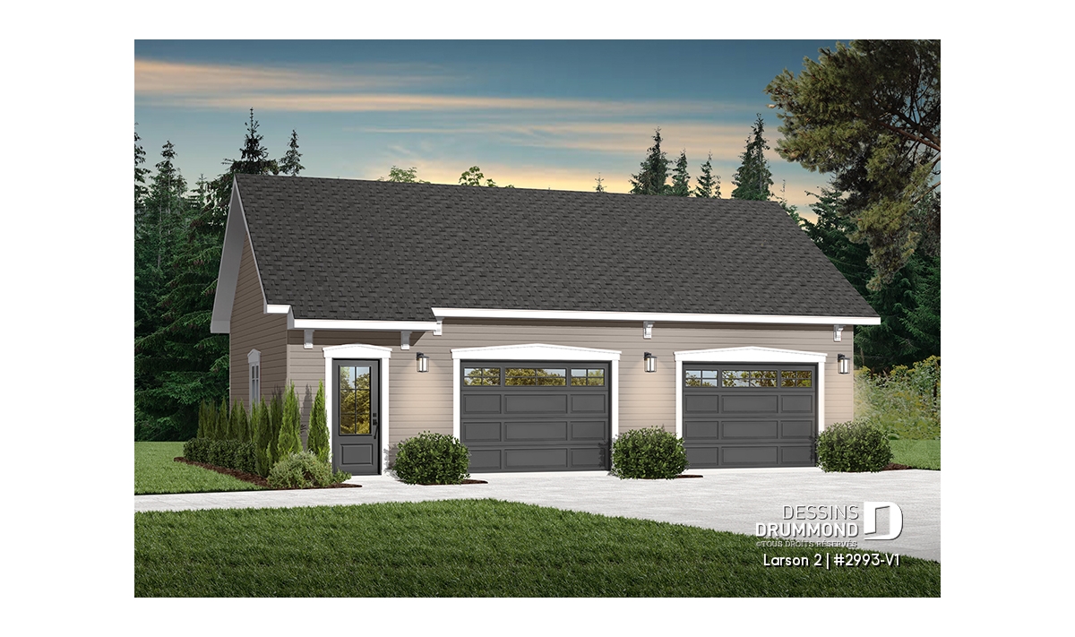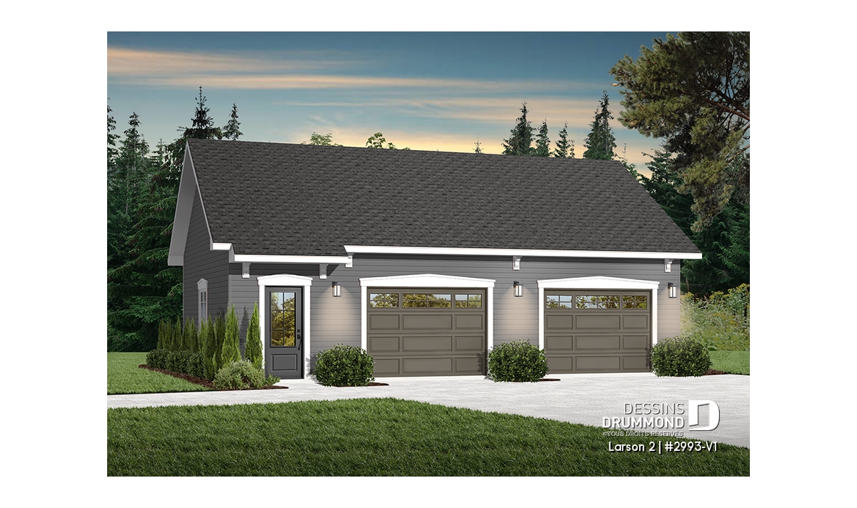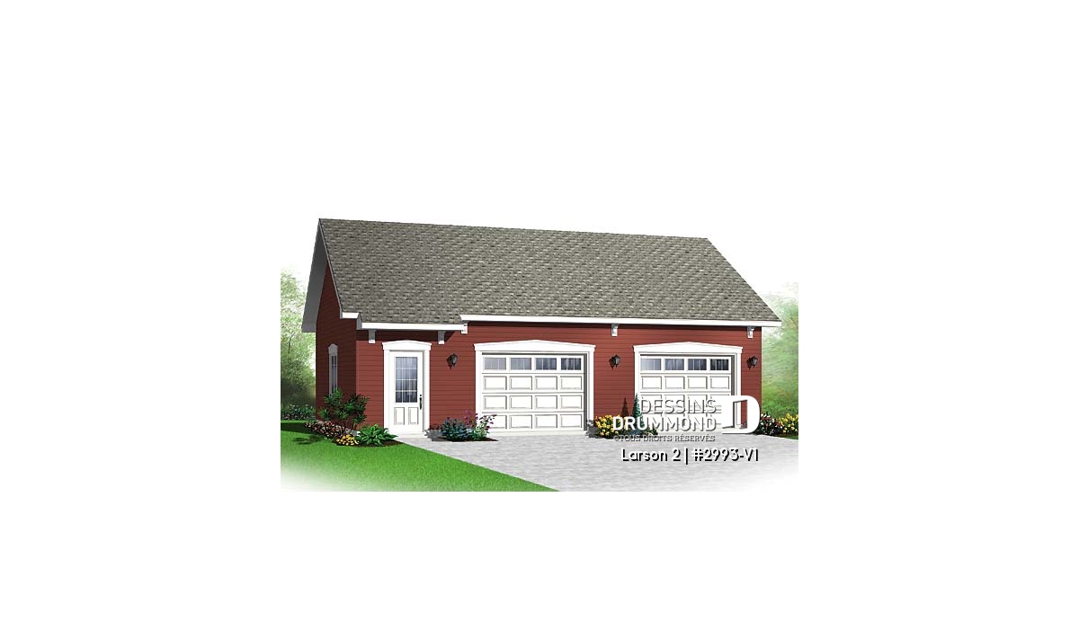 Plan de garage double offrant de l'espace pour 2 voitures et espace de rangement au grenier