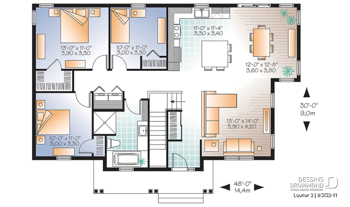 | Largeur | 48'0" | Profondeur | 30'0" |