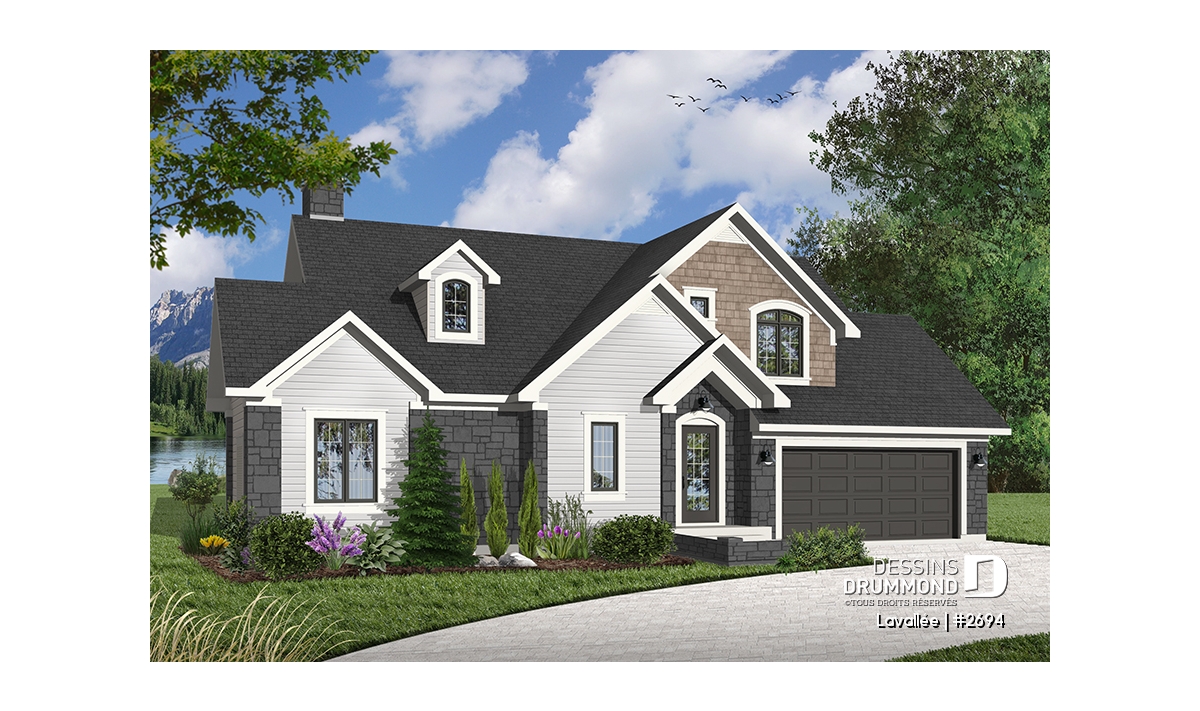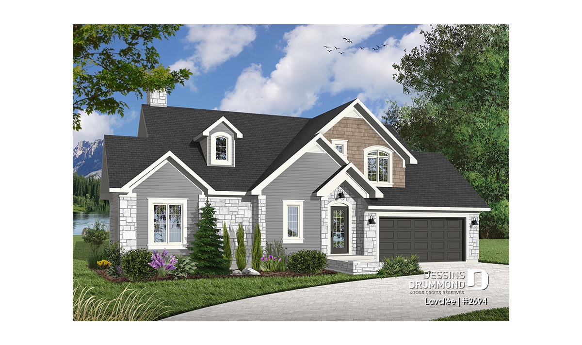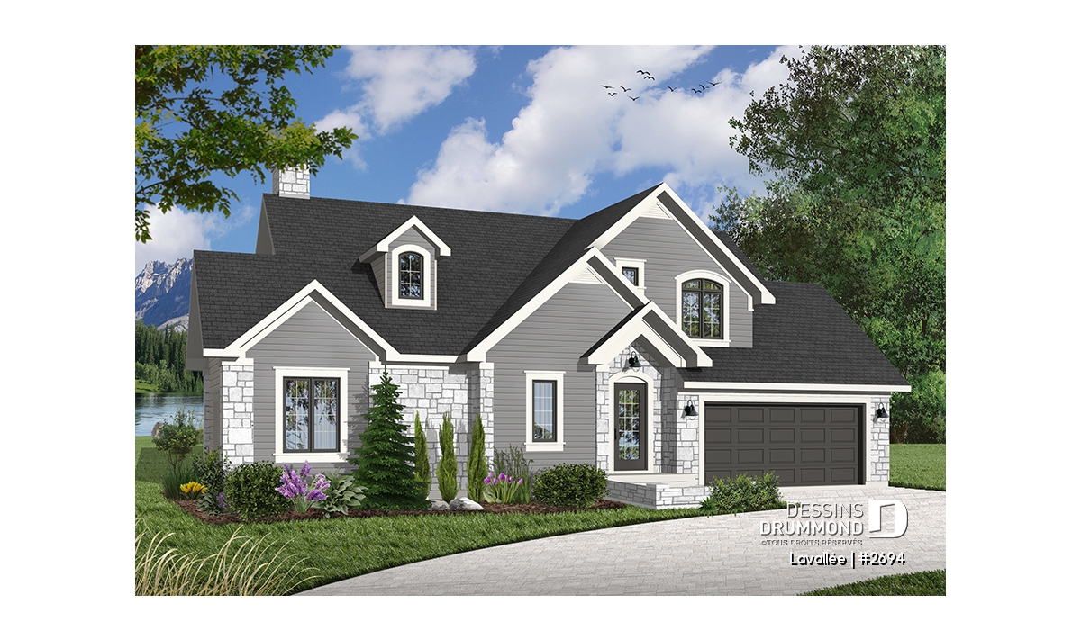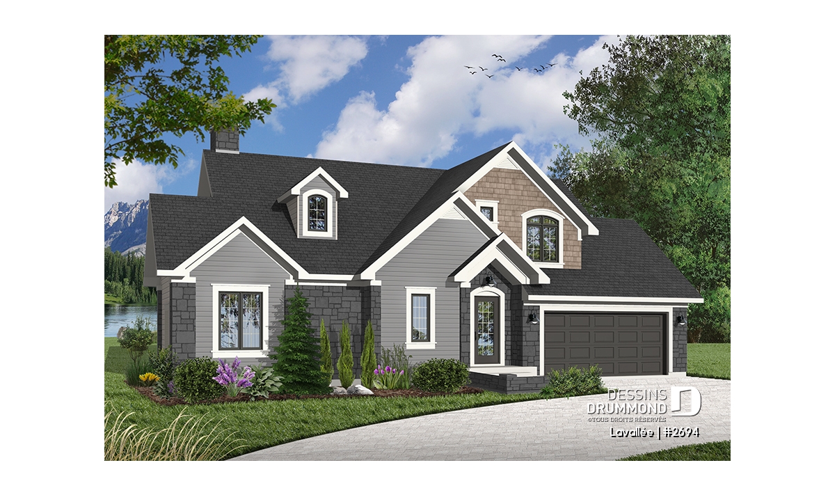 Cette maison suggère, en plus de sa fenestration remarquable, plein d’atouts majeurs dont un garage double avec accès sur l’arrière, un vestibule à l’entrée principale, une buanderie, une suite chambre des maîtres partageant un foyer avec la salle de séjour, une belle salle de séjour, une salle à manger confortable à plafond cathédrale tout comme la salle de séjour et un espace cuisine/dînette plus qu’appréciable et en solarium pour ce qui est du rez-de-chaussée. À l’étage, trois chambres, une salle de bain et une mezzanine complètent le tout.