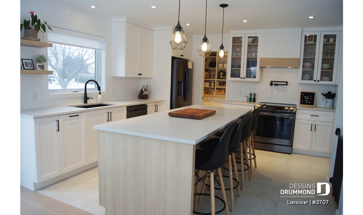 Cuisine de grand format avec plusieurs comptoirs, garde-manger et îlot pouvant recevoir 4 personnes aisément.