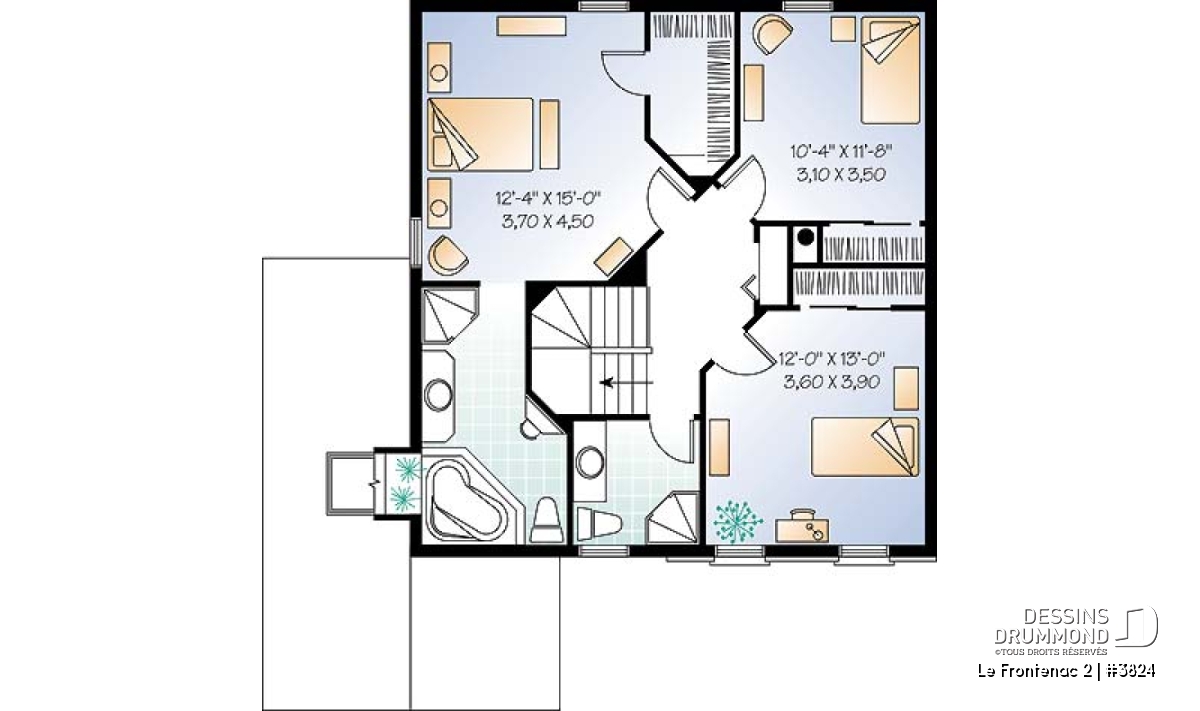 Plan de maison à étage avec garage offrant de grandes chambres.