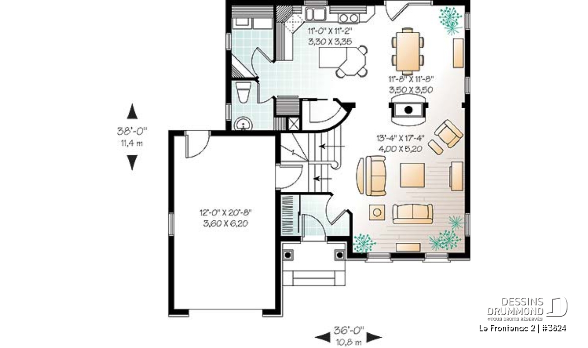Garage une voiture. Voir le plan no. 6824-V1 si vous souhaitez un garage double.