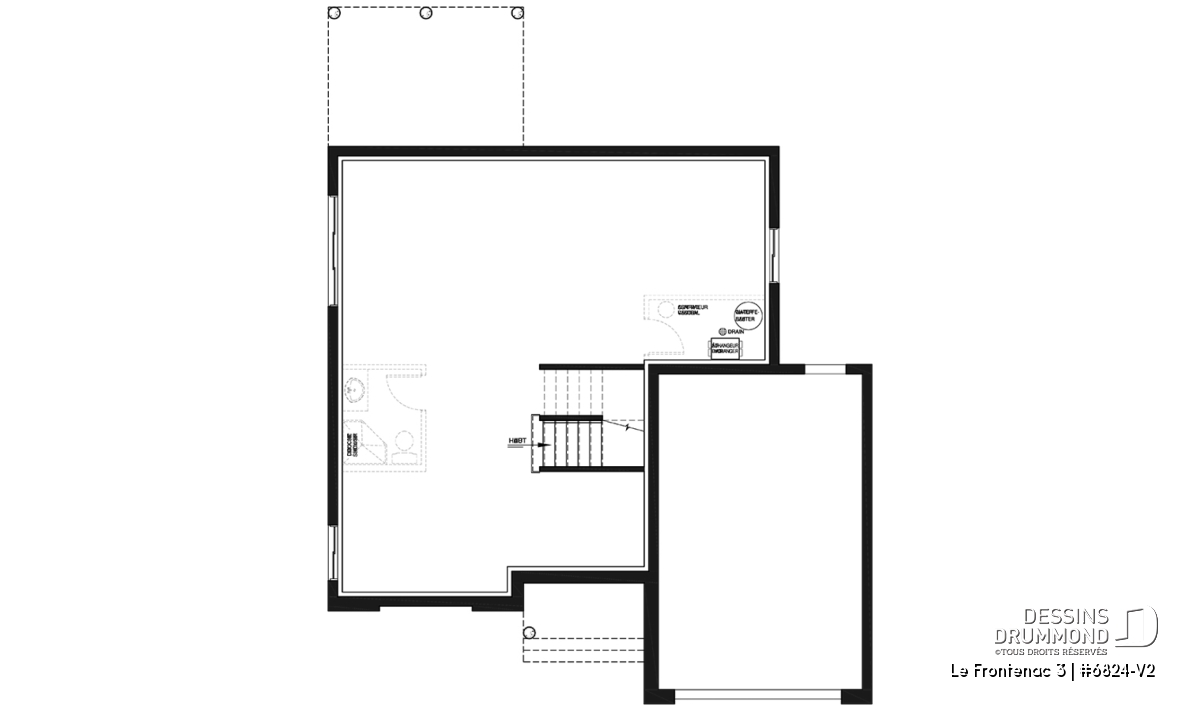 Garage une voiture. Voir le plan no. 6824-V1 si vous souhaitez un garage double.