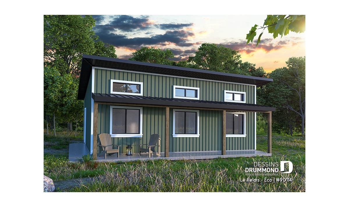 Inspirée du modèle Le Relais (plan #1904), la mini-maison LE RELAIS - ÉCO est une version éco-responsable et revisitée de cette première.