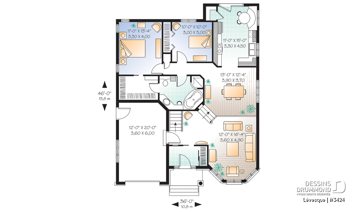 | Largeur | 36'0" | Profondeur | 46'0" |
