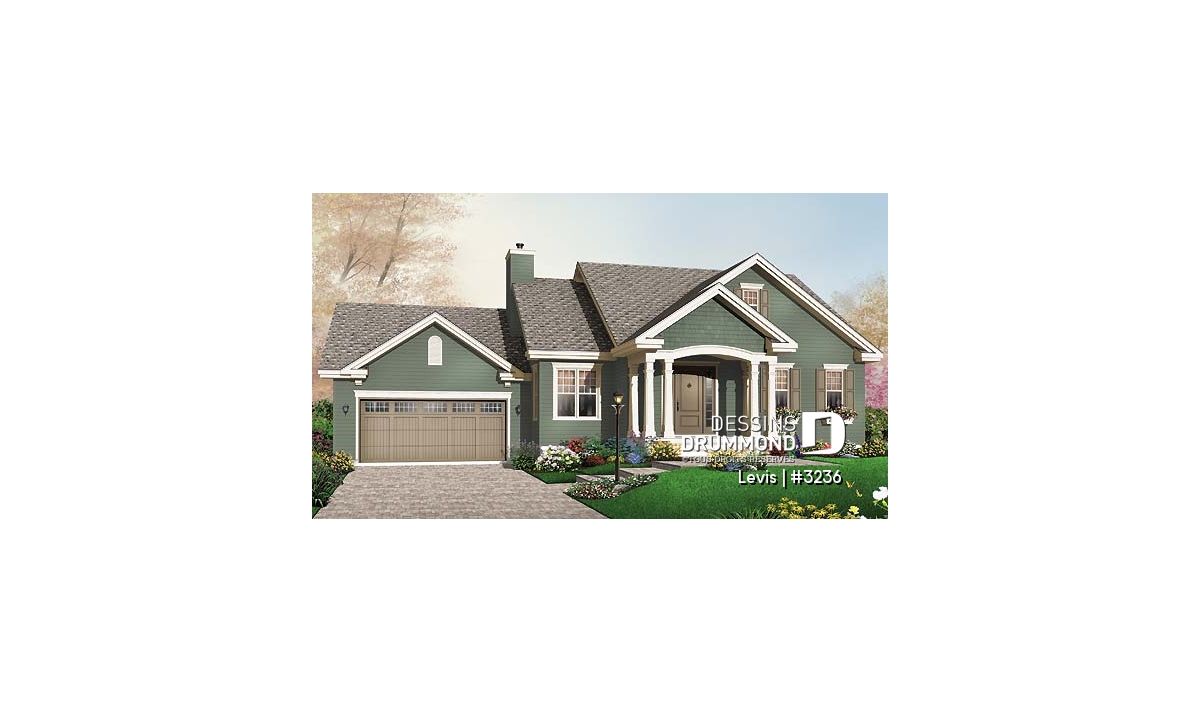 Rares sont ceux qui le proposent, mais ce plain-pied de style traditionnel le fait en suggérant un garage double fort bien équilibré avec le volume maison, tout en donnant une certaine envergure à celle-ci. De plus, avec un plafond à 11 pieds de hauteur, le garage se veut à la fois des plus utilitaire lorsqu’on parle de rangement.