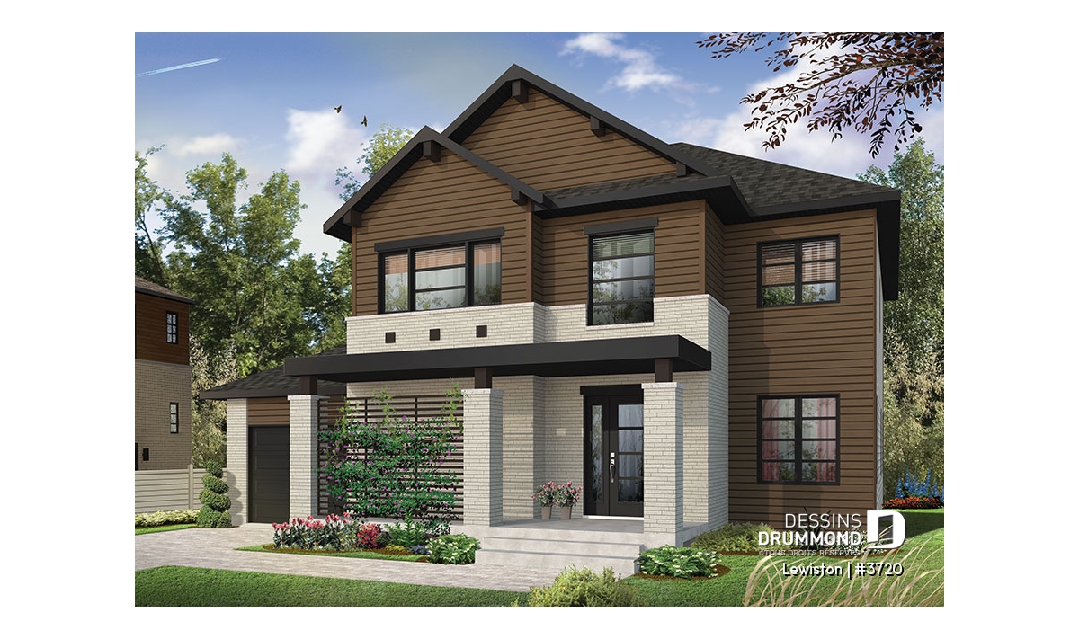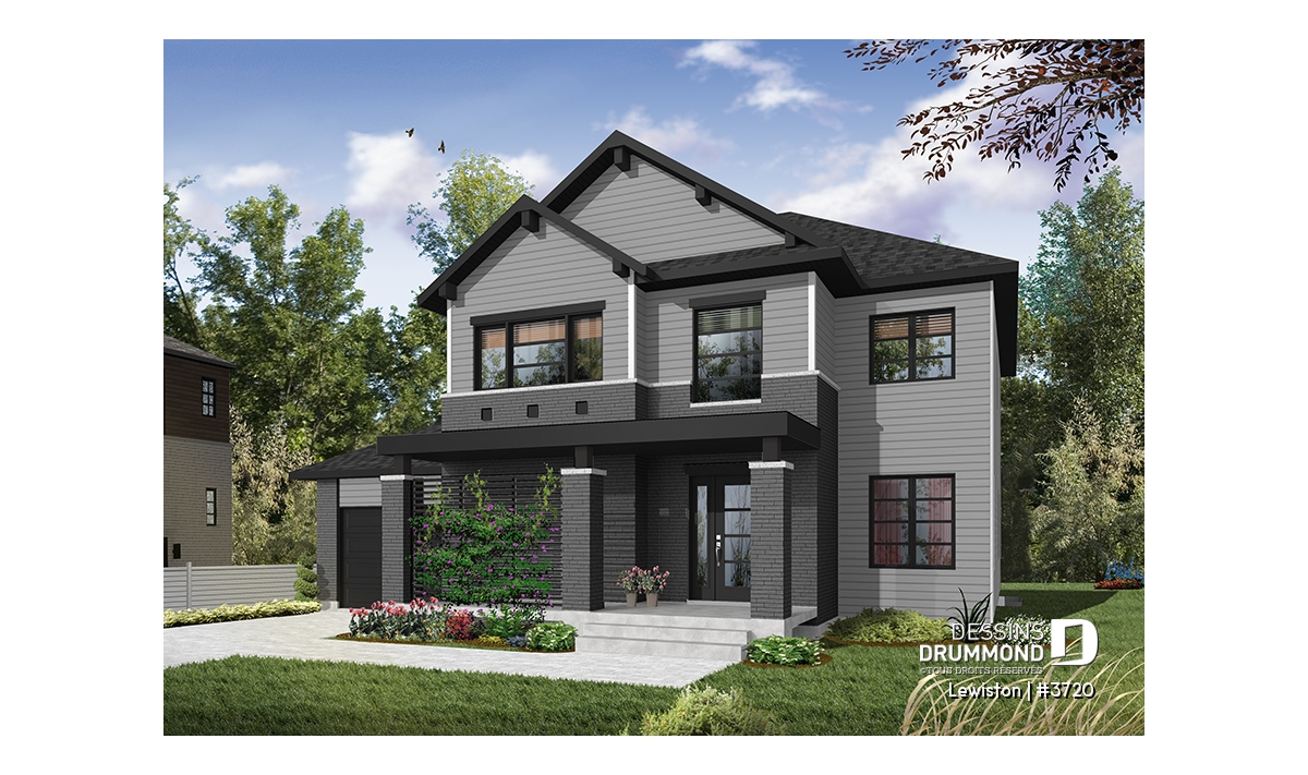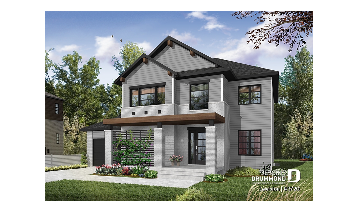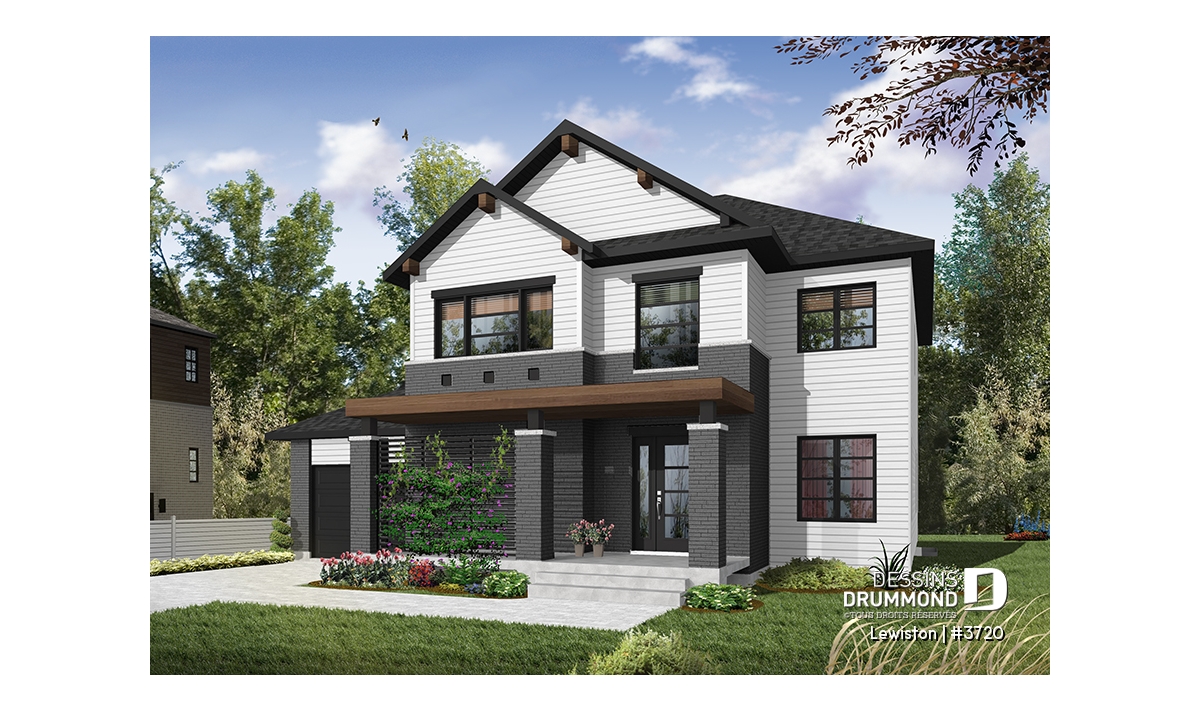 Découvrez un nouveau modèle de maison pour grande famille ou pour famille recomposée avec plusieurs enfants, à deux étages. D'inspiration moderne rustique et d’approche maison contemporaine ou maison zen, le cachet extérieur, jumelé à une maximisation des espaces intérieurs, contribuera à retenir votre attention tout comme ce sera le cas pour l’estimation du coût de construction, plus qu'abordable.
