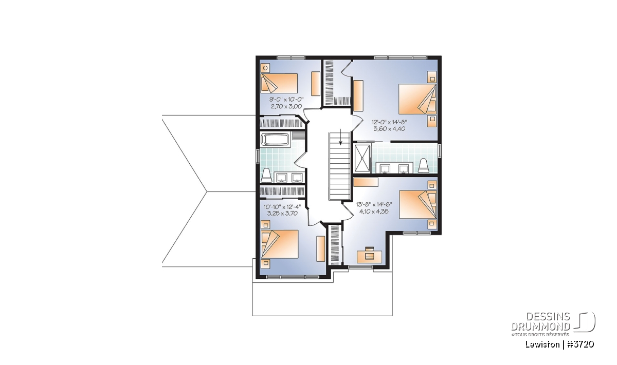 Le deuxième étage offre 4 chambres à coucher et deux salles de bain complètes. La chambre des maîtres a une grande garde robe de style walk-in et une salle de bain avec grande douche et une vanité double. Les trois autres chambres à coucher se partagent une salle de bain complète avec vanité double et bain douche.