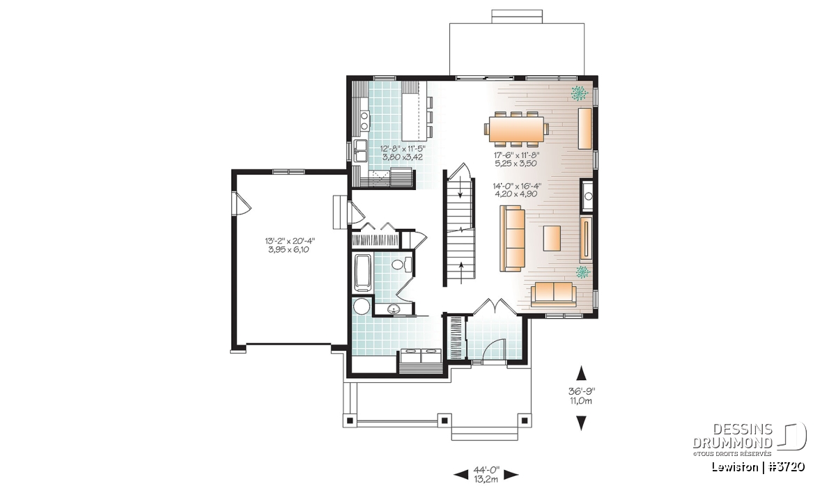 Pour ce plan de maison pour grande famille, le concept du premier plancher à aire ouverte débute ici par l’entrée vestibule avant avec grande garde robe et une porte française double vers la salle familiale, permettant ainsi de garder le froid à l'extérieur. Puis, vous serez accueillis tout de suite par une grande salle familiale lumineuse avec foyer, et une salle à dîner attenante de grand format. Cette dernière offre une porte patio menant vers une grande terrasse à l'arrière, bien pratique pour les repas en famille à l'extérieur, car tout près de la cuisine.