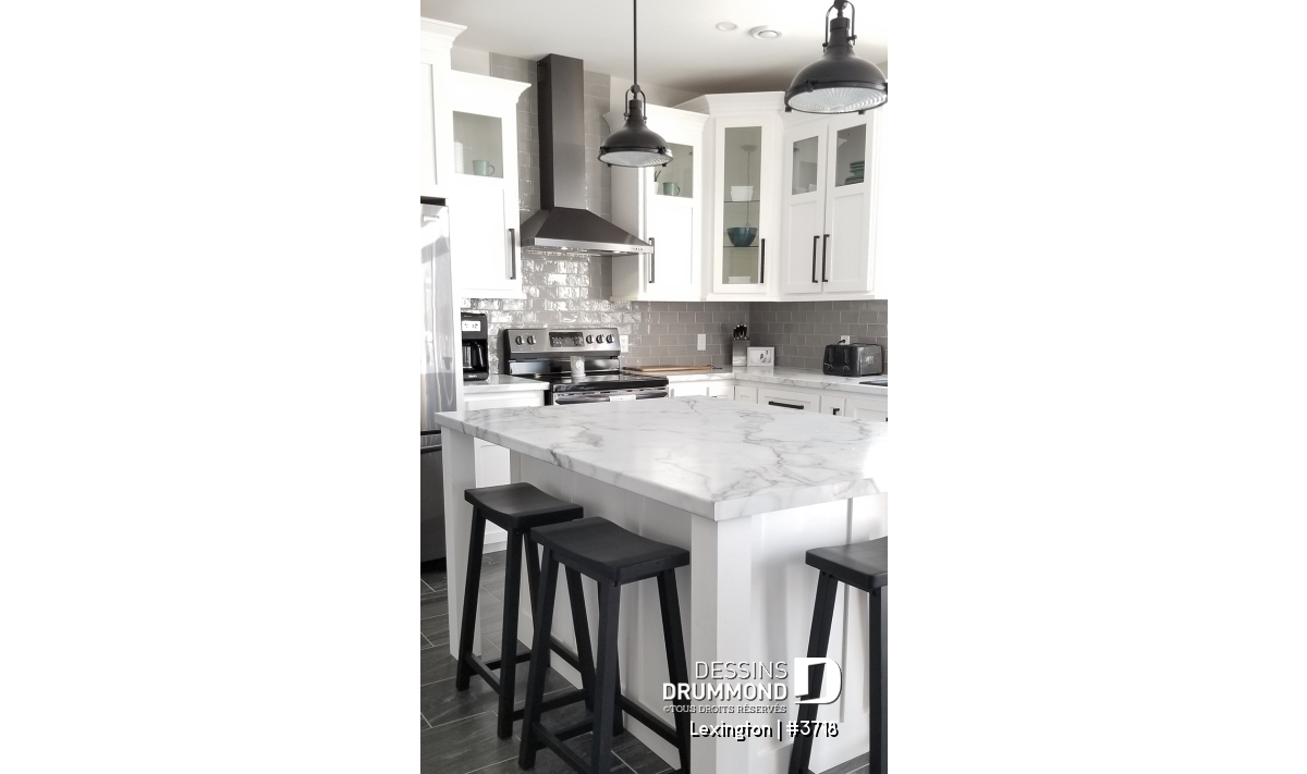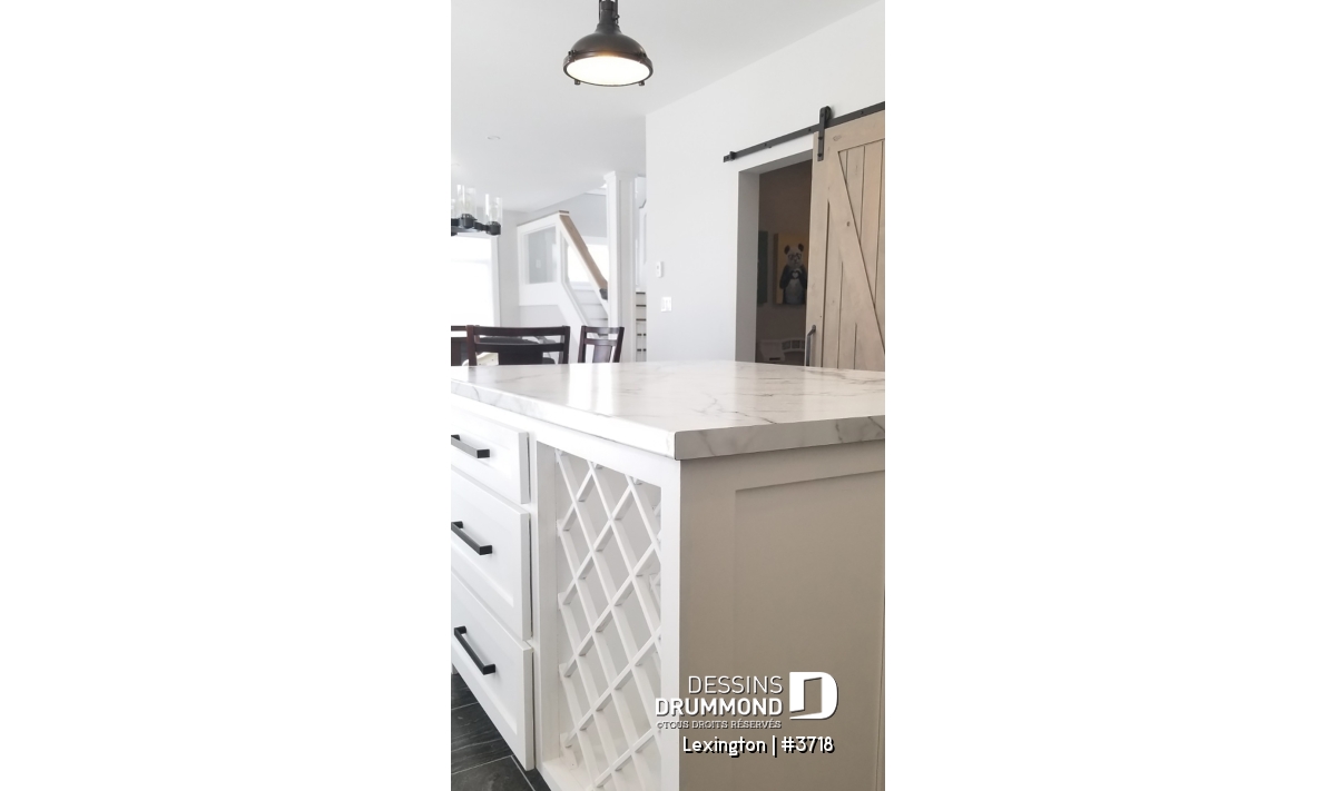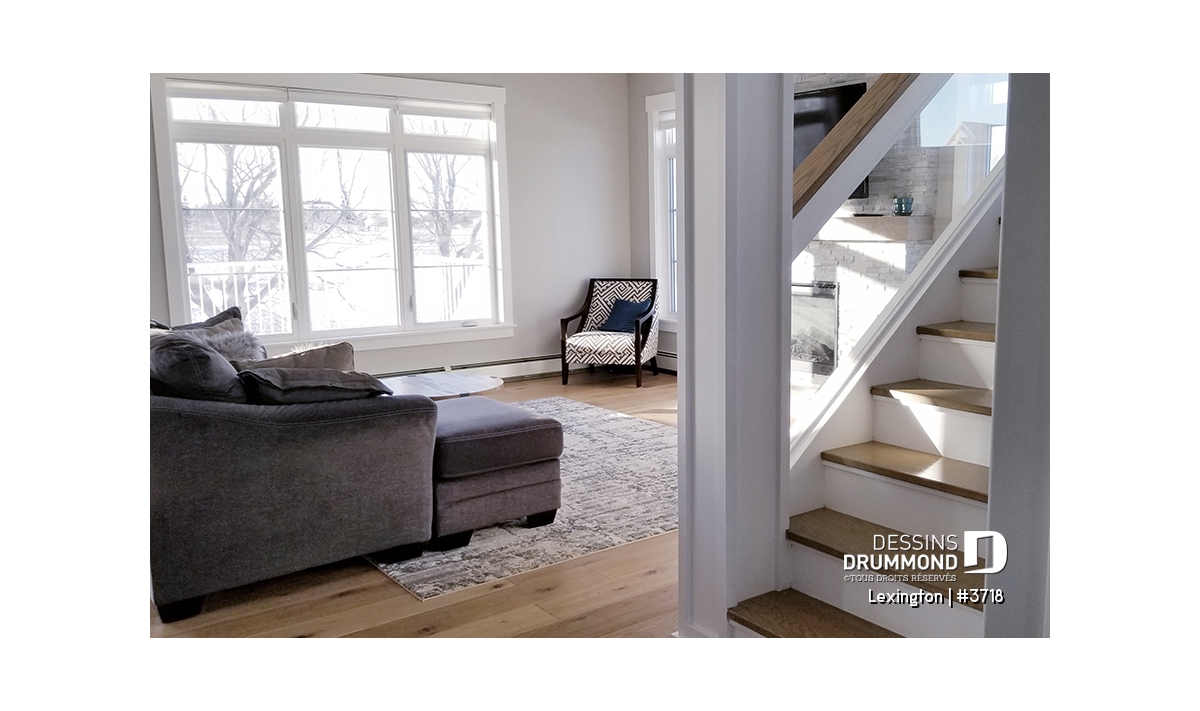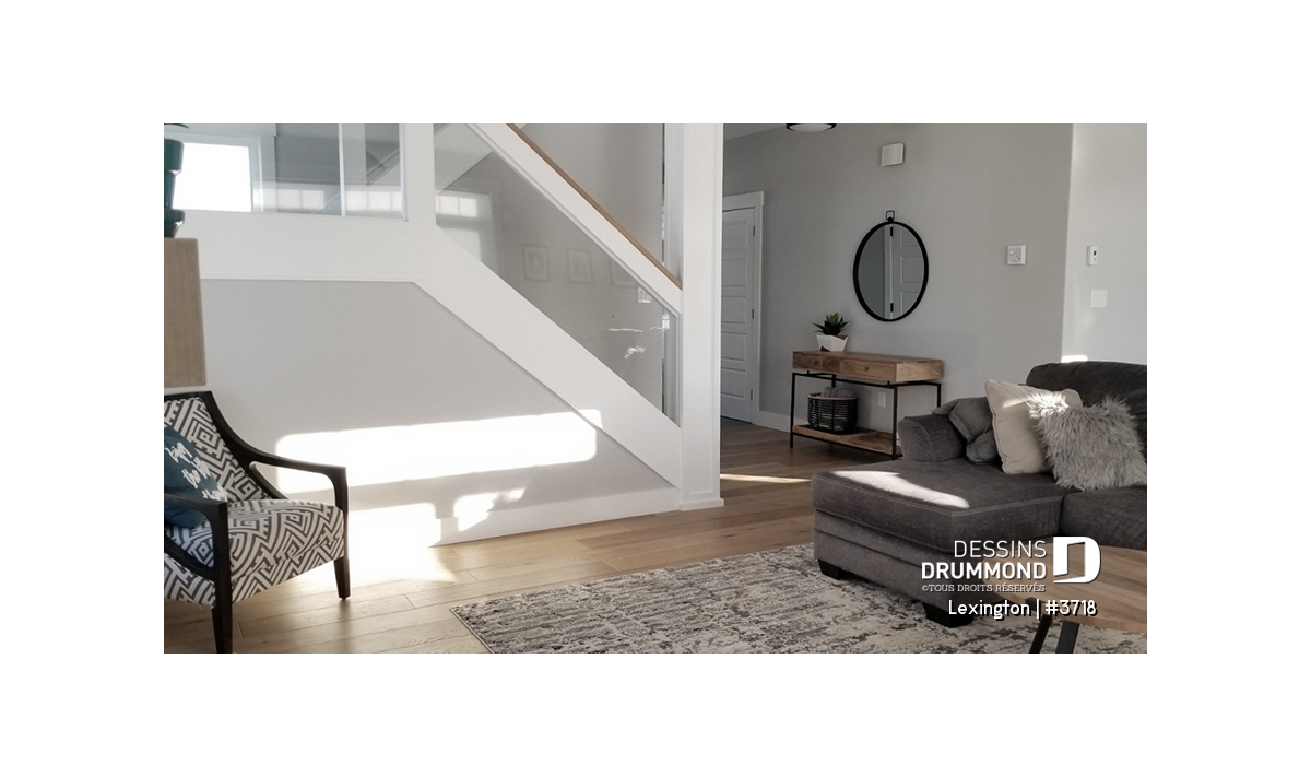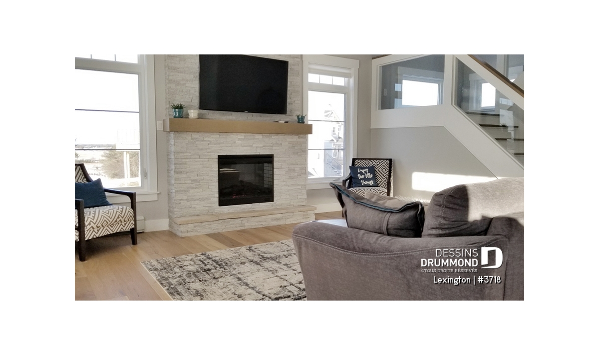 L'entrée principale possède un vestibule de bon format comprenant un garde-robe. Le rez-de-chaussée propose un plan de plancher à aire ouverte favorisant ainsi les moments en famille et idéal aussi pour les soirées entre amis et réceptions. La salle de séjour et la salle à manger se partagent la vue sur une grande terrace habritée à l'arrière de 24' x 10', qui est accessible par les portes de la salle à manger. Un foyer bien localisé permet aussi une ambiance réconfortante qu'on soit à la cuisine, salle à manger ou au séjour. La cuisine possède un grand îlot et un accès rapide à la buanderie et salle d'eau. L'accès direct au garage de la cuisine et du rangement abondant sont des détails pratiques qui sauront vous plaire!