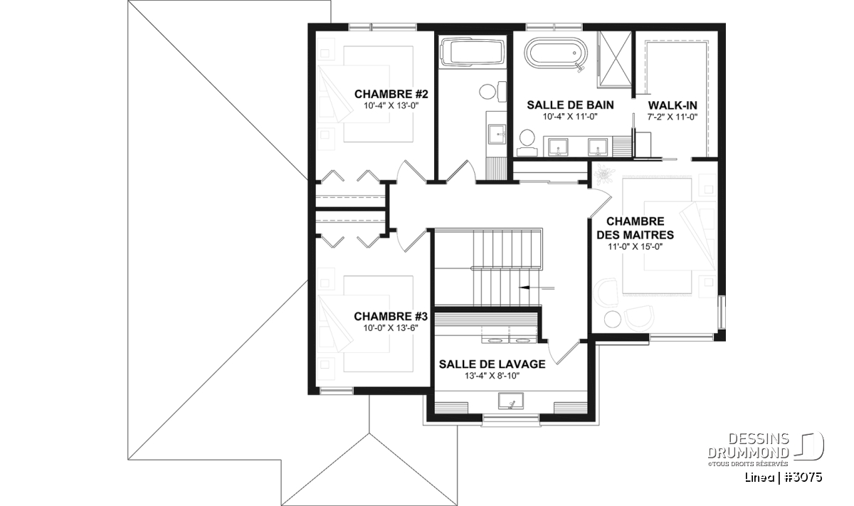 Trois chambres additionnelles se partagent une salle de bain complète.