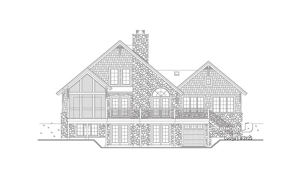Superbe plan de chalet rustique avec grande terrasse.