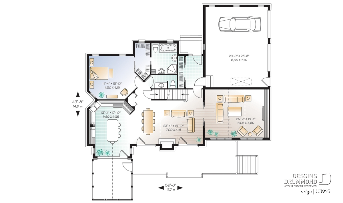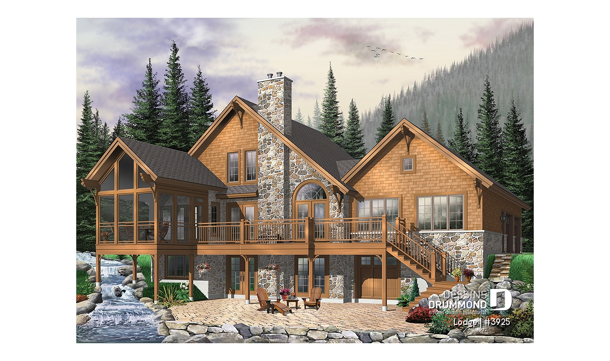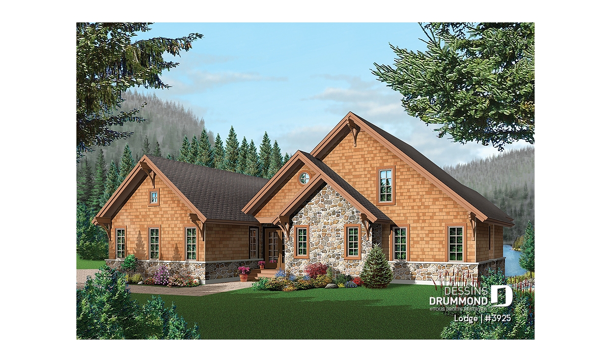 Vous êtes à la recherche d’un « chalet » familial ? Eh bien prenez le temps d’apprécier ce plan 3925 dont les commodités intérieures comme extérieures vous surprendront !