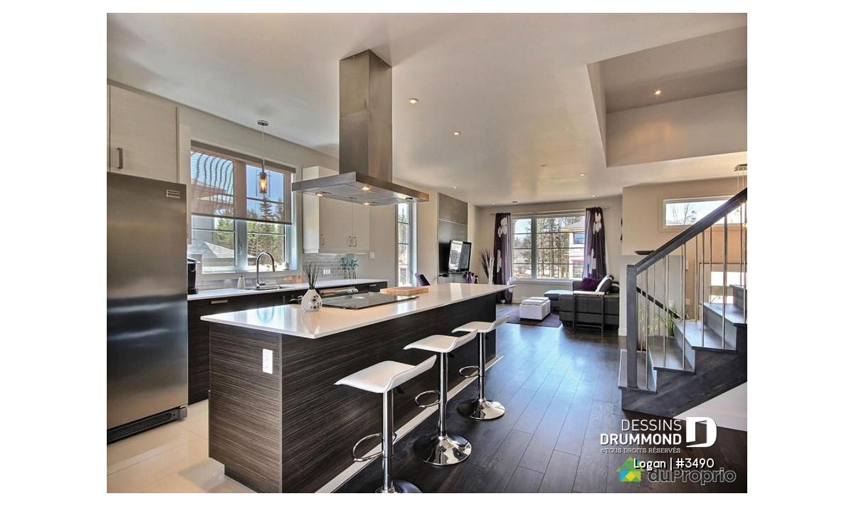 Conçu à parti du très populaire plan 2490, ce modèle à paliers se veut davantage confortable avec cet agrandissement de 3pi en largeur et de 2pi en profondeur. De plus, il se veut une solution attrayante pour tous ces propriétaires à la recherche d’un plan de maison doté d’un intérieur dynamique, ouvert et distinctif. C’est d’ailleurs cette approche à paliers qui confère au plan ces trois qualificatifs.