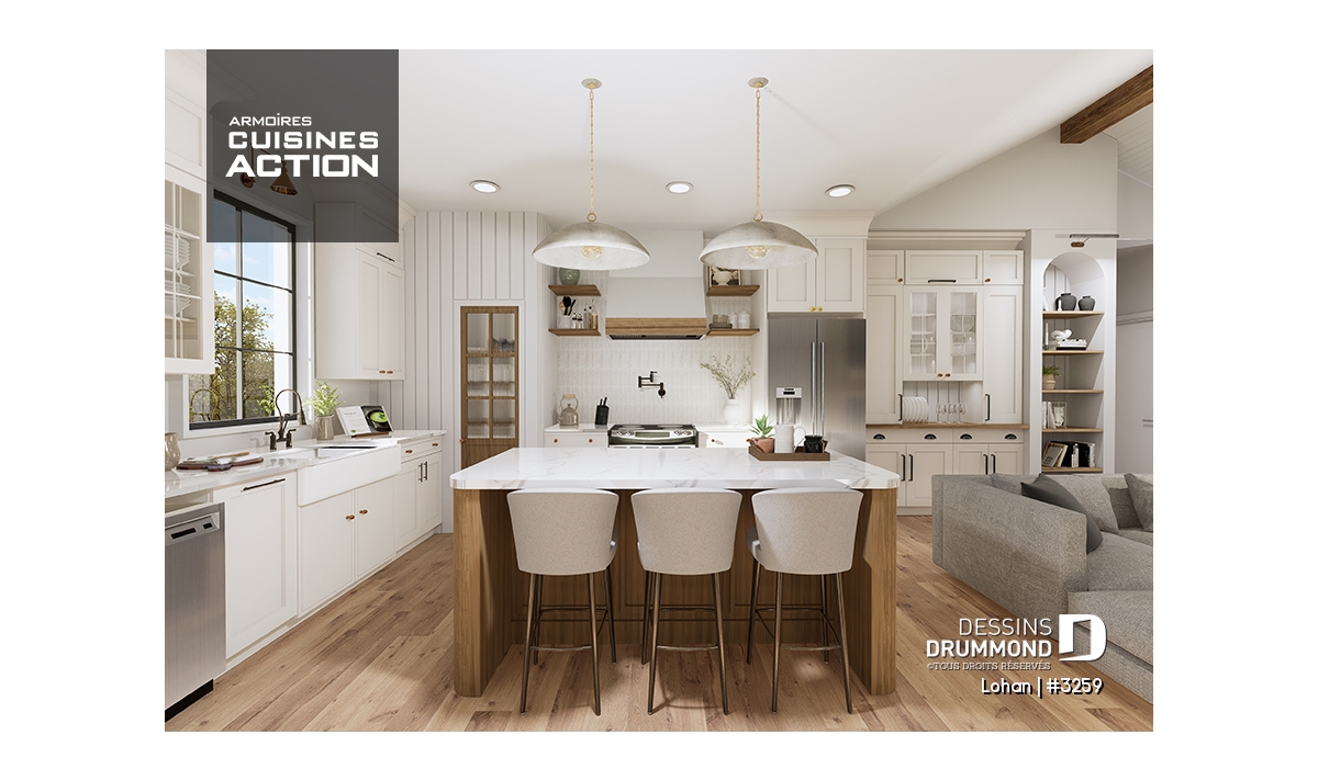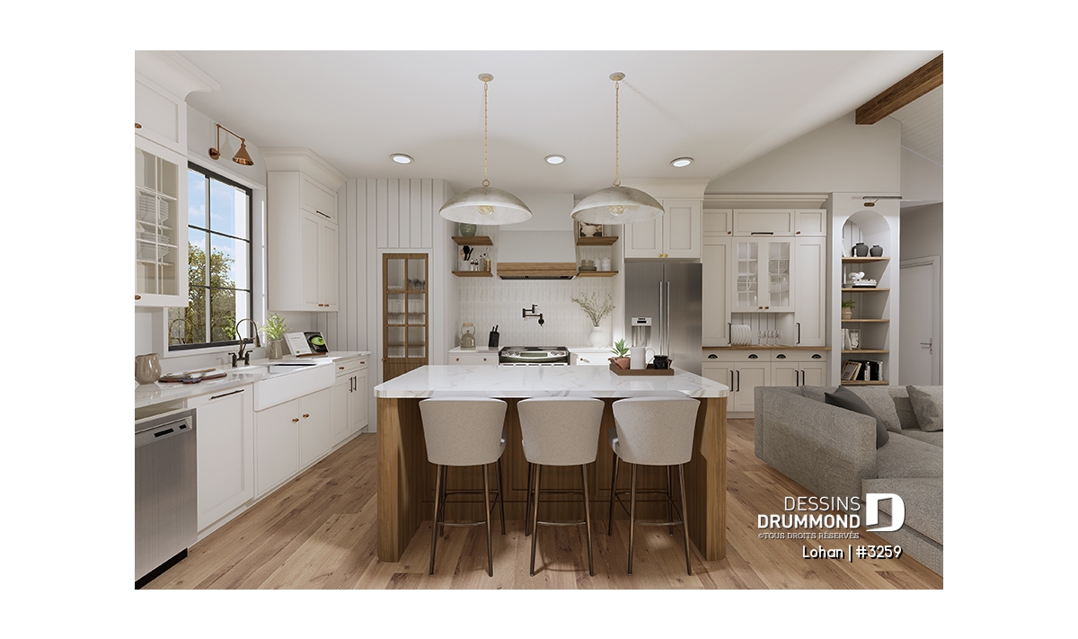 Banquette, Plafond cathédrale, Plafond à plus de 8', Suite des maîtres au rdc, Lavabo double, Salle de lavage au rez-de-chaussée, Garde-manger, Foyer, Aire ouverte, Ilôt, Tablettes, Walk-in ch. maîtres, Auto-Construction