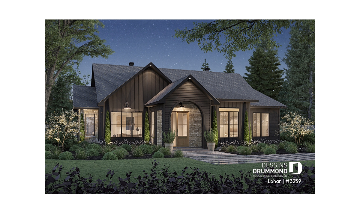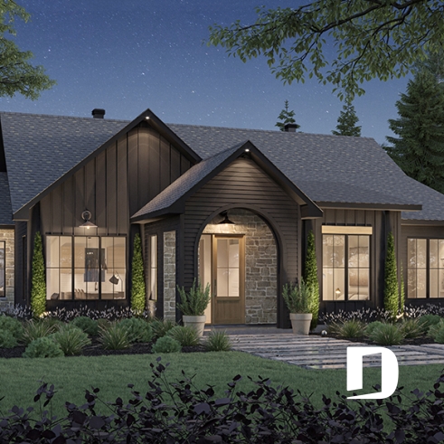 Le cachet chaleureux est amené par le choix des matériaux foncé et la pierre en façade.