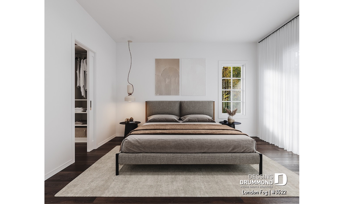 Suite parentale à l’étage avec garde-robe de type walk-in et salle de bain privée.