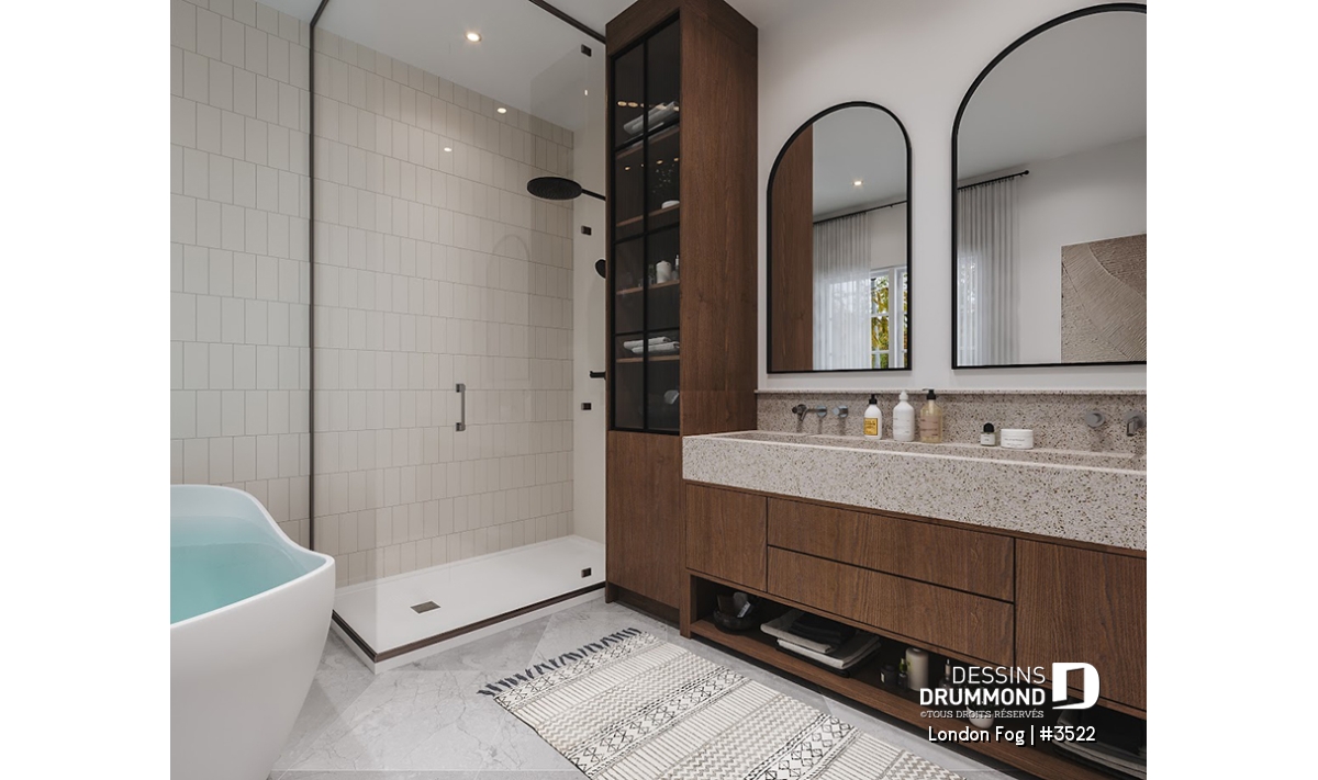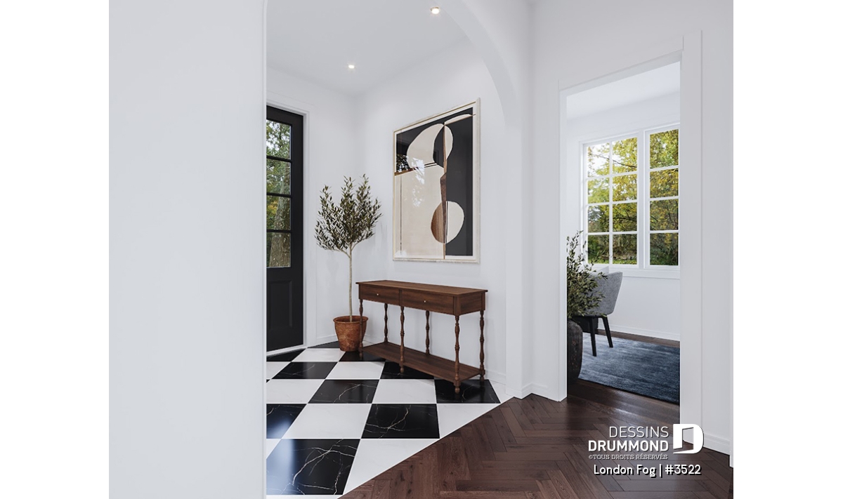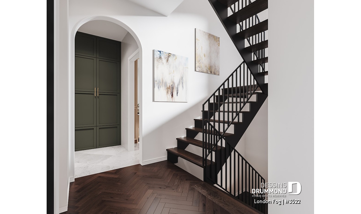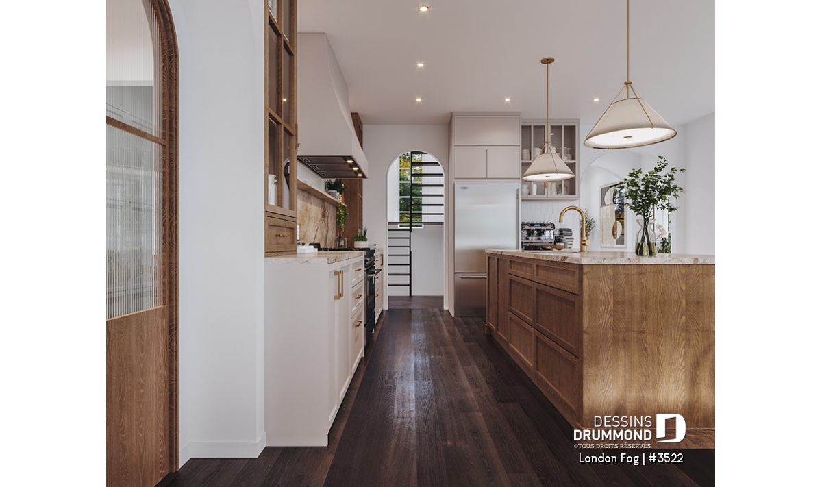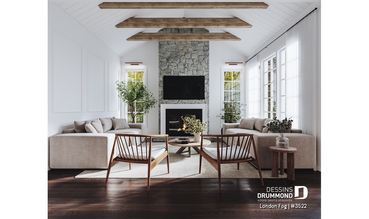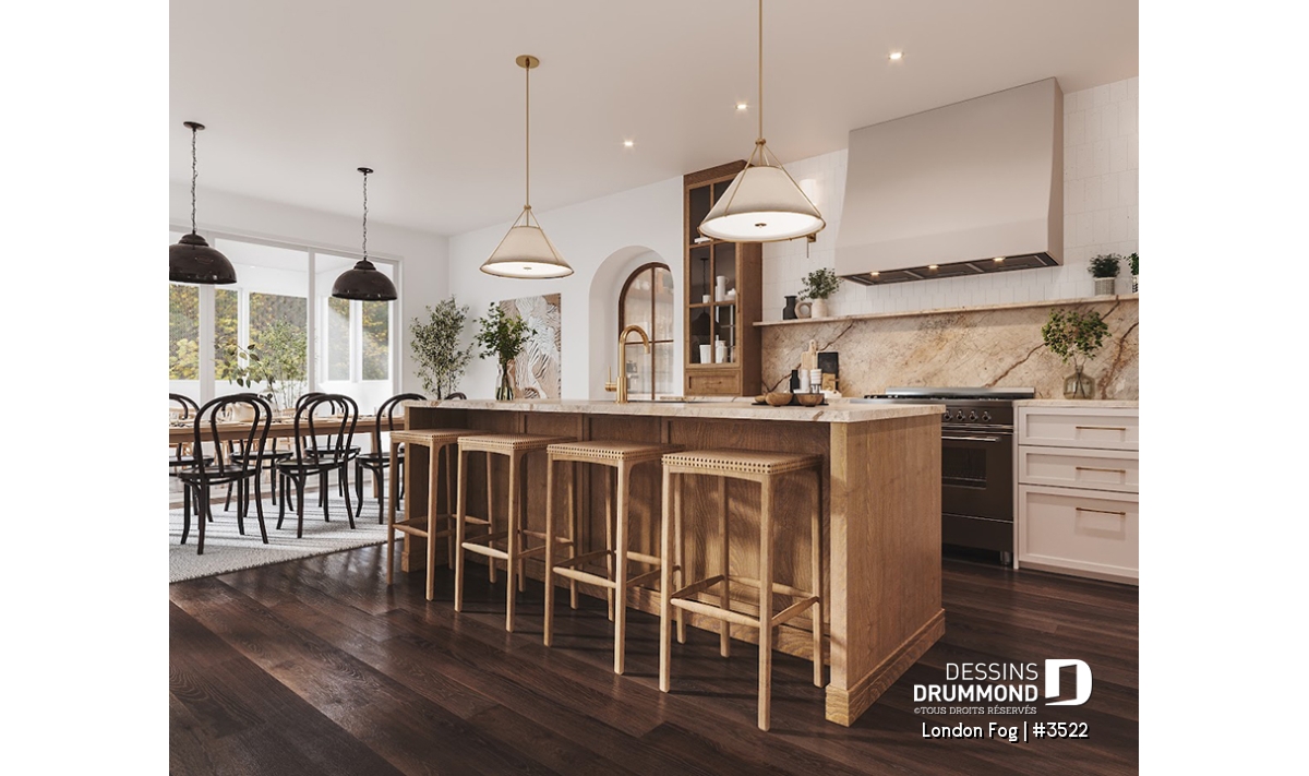 Le plan de maison LONDON FOG (plan #3522) a été conçu par notre directrice artistique, Jenn, pour une jeune famille qui souhaitait avoir une maison de style « English cottage » avec pentes de toit prononcées, lucarnes et un foyer en briques. Ils souhaitaient un style différent et classique qui traverserait le temps. Avec ses 3294 pieds carrés, aménagés sur 3 étages et son garage avec espace boni à aménager à l’étage (éventuellement), chaque membre de votre famille y trouvera son coin de bonheur!