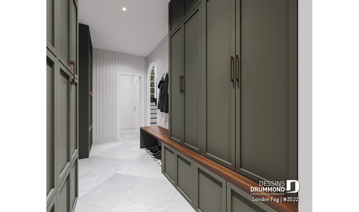 Vestiaire judicieusement installé entre l’entrée du garage et la cuisine.