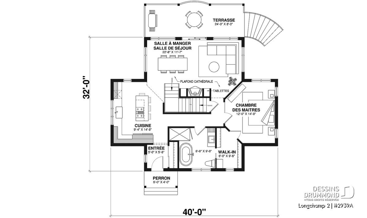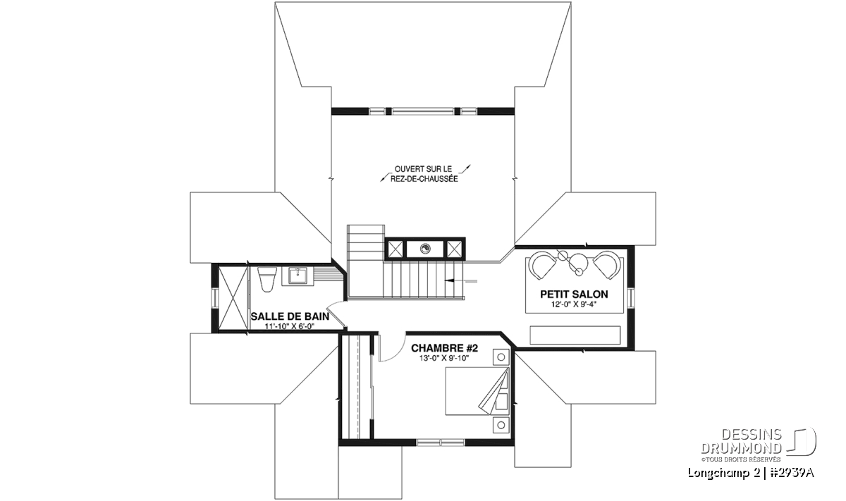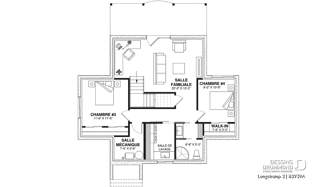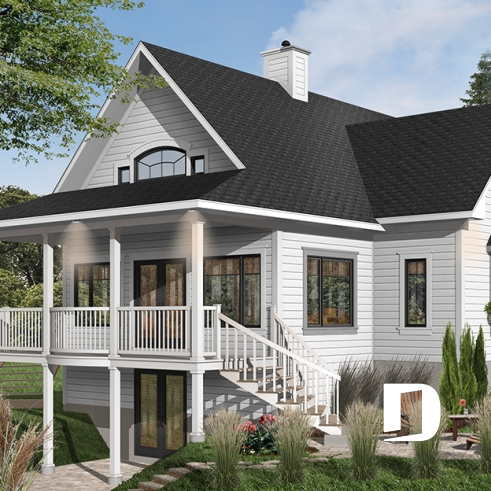 À l’intérieur, que l’on soit dans la cuisine, la salle à manger, la salle de séjour ou la chambre des maîtres, on peut facilement observer ce panorama de tout le rez-de-chaussée. Ce sont là de bien beaux espaces intérieurs et tous offrent une particularité. Cuisine attrayante avec îlot central, fenestration abondante et foyer mitoyen à la salle de séjour et la salle à manger, belle chambre des maîtres avec grande garde-robe et accès discret à la salle de bain complète.
