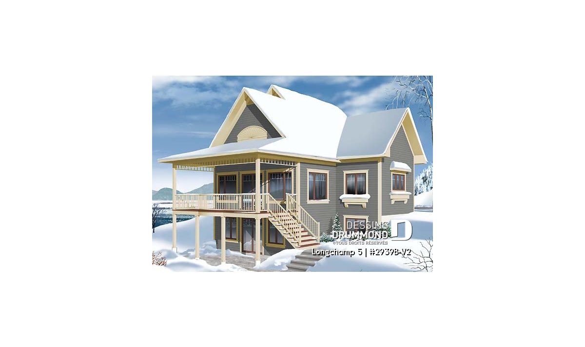Quant à ce 2939B-V2, celui-ci se distingue avec son garage attaché de tout près de 400 pi2 dont l’accès à la maison se fait par un espace buanderie agrandi ou par cette porte donnant sur la galerie avant. Ici, on apprécie l’addition de plus de 125 pi2 tant au rez-de-chaussée qu’au sous-sol et pour l’obtention de pièces toutes plus confortables. Amateurs de plein-air, de sports d’été ou d’hiver, voilà un chalet qui pourrait fort bien correspondre à vos plus profondes attentes !