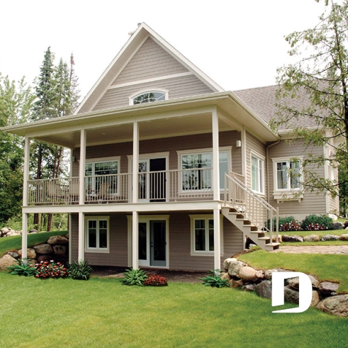 Plan de maison pour terrain bord de l'eau, ou chalet de ski.