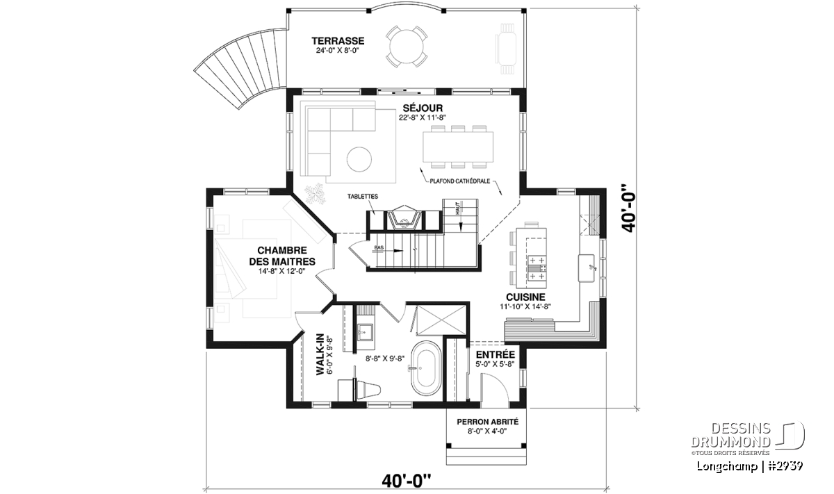 Foyer, Plafond cathédrale, Mezzanine, Terrasse abritée, Accès au sous-sol de l'extérieur, Aire ouverte, Comptoir-lunch, Vue paronamique, Ilôt, Walk-in ch. maîtres