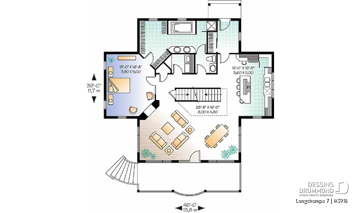 | Largeur | 46'0" | Profondeur | 39'0" |