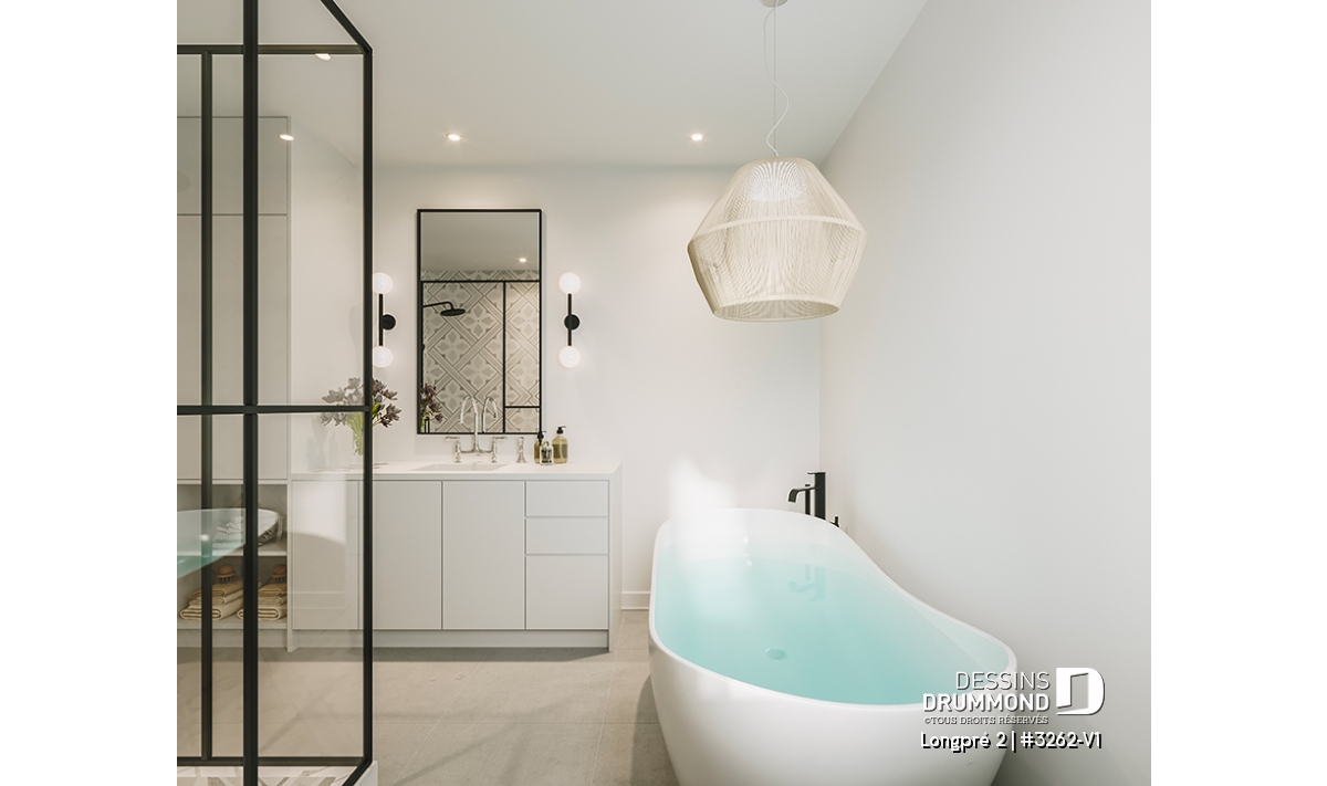 Suite des parents avec salle de bain privée et walk-in spacieux.