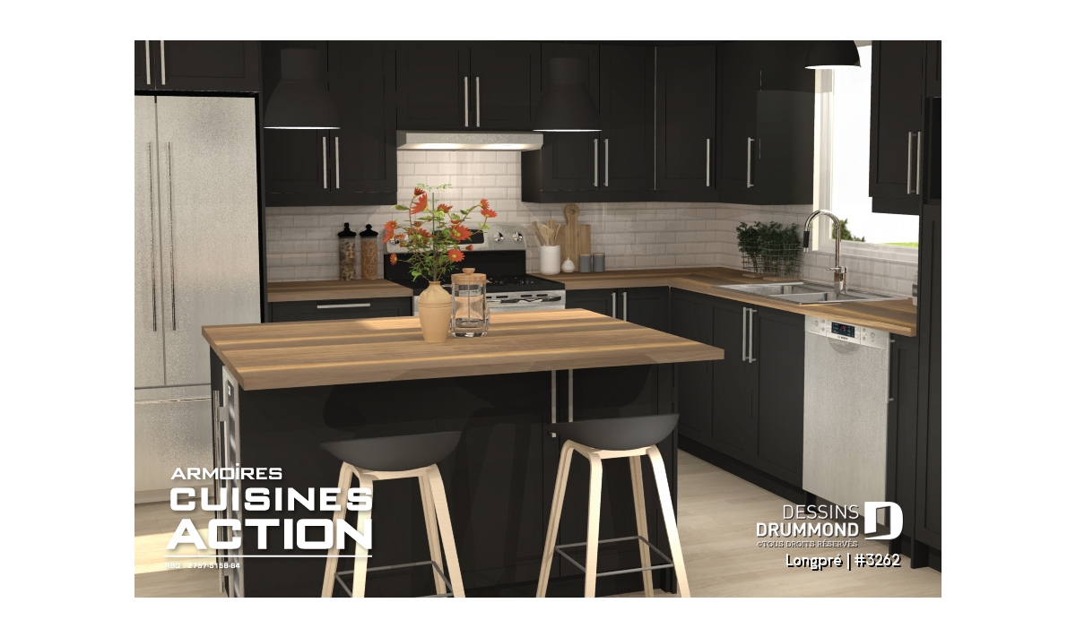 Îlot-lunch à la cuisine.