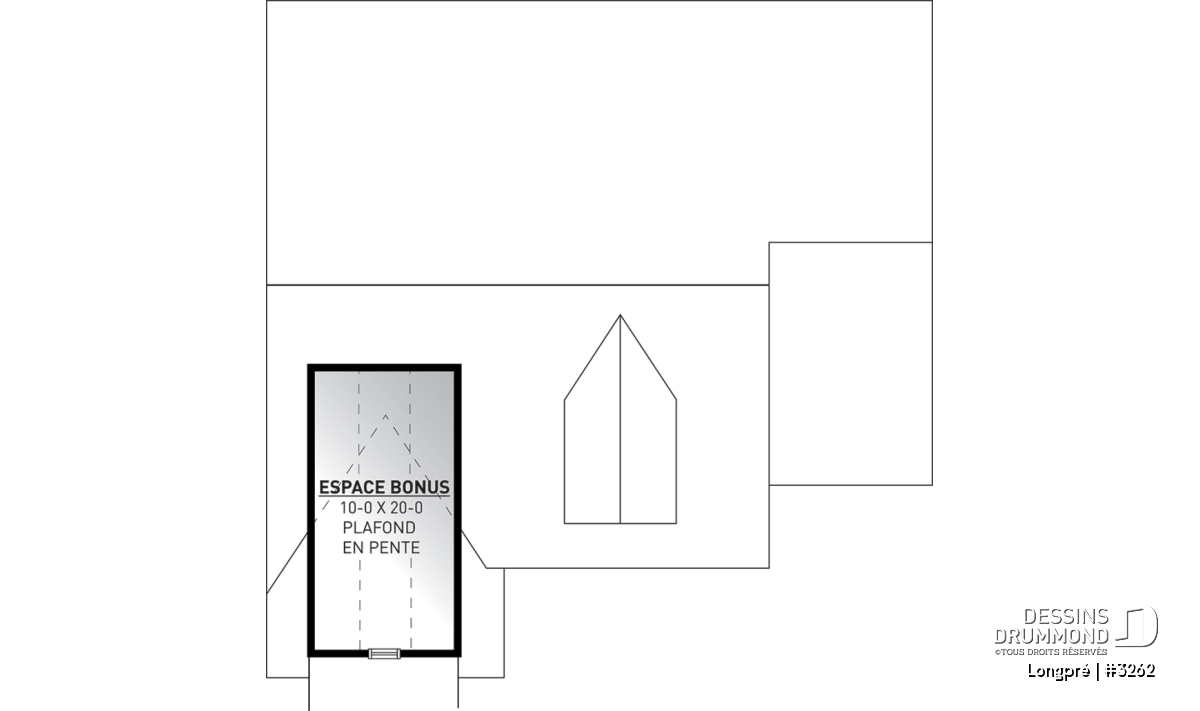 Rangement boni prévu au-dessus du garage et accessible par un escalier escamotable.