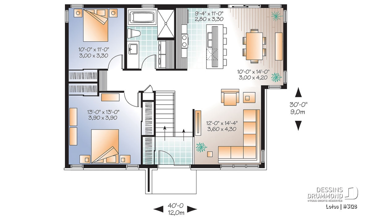 | Largeur | 40'0" | Profondeur | 30'0" |