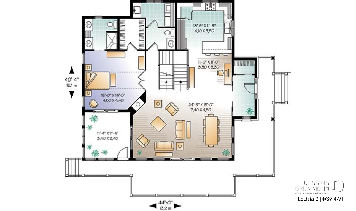 Si vous êtes à la recherche d’une maison vous permettant une vue sans fin sur le panorama, ce plan de maison chalet 4 saisons est pour vous! De belles lignes simples, une tonne de fenêtres, une véranda avec abri-moustiquaire et des balcons sur deux faces… ne sont là que quelques-uns des attributs extérieurs de ce beau modèle idéale pour terrain en pente et avec accès à la rivière ou à un lac! La façade avant est aussi jolie que la vue arrière permettant ainsi de convenir à plusieurs styles de terrain.