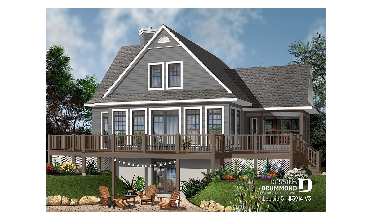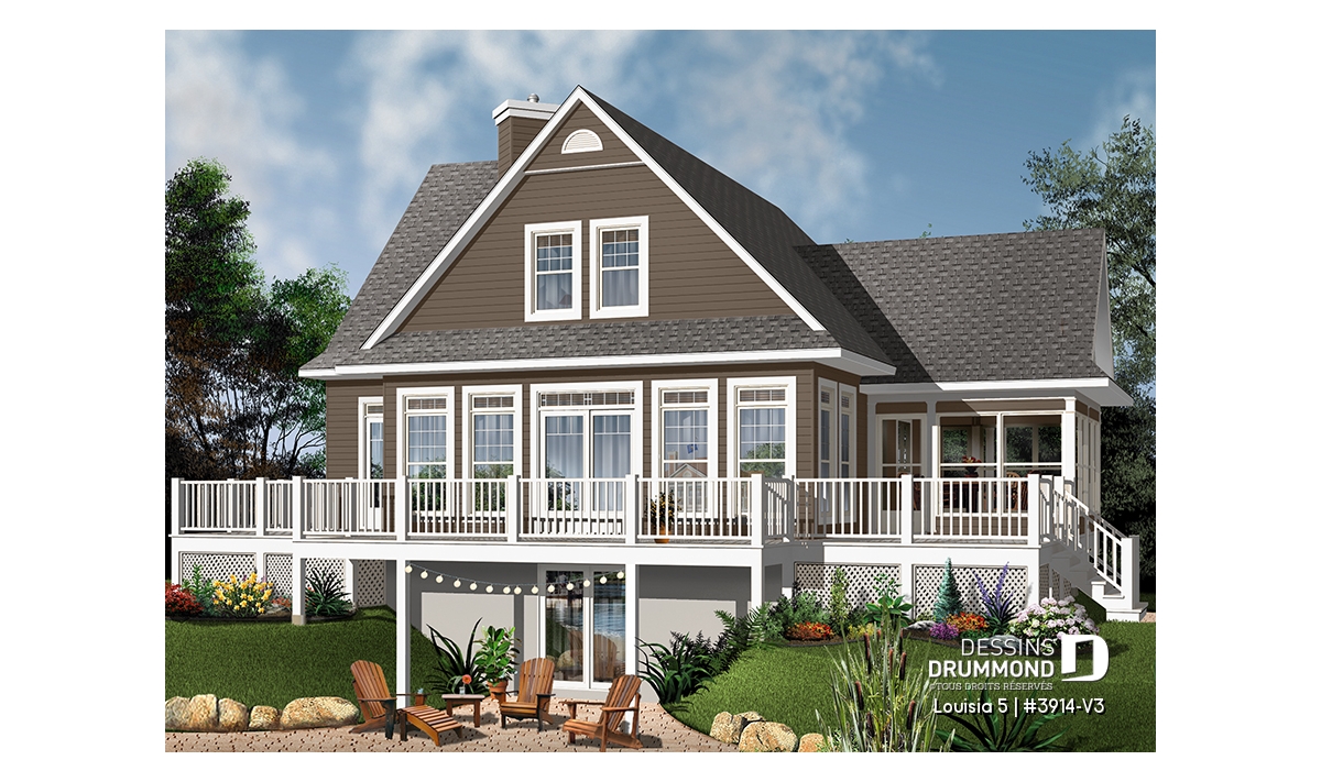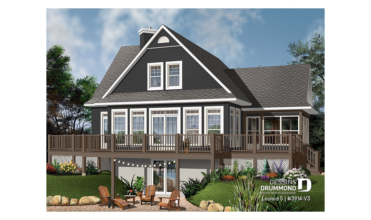 Abri moustiquaire, Foyer, Ilôt, Aire ouverte, Walk-in ch. maîtres, Vue paronamique, Plafond à plus de 8', Plafond en pente, Salle de lavage au rez-de-chaussée, Suite des maîtres au rdc, Bain et douche séparés, Lavabo double, Vestibule